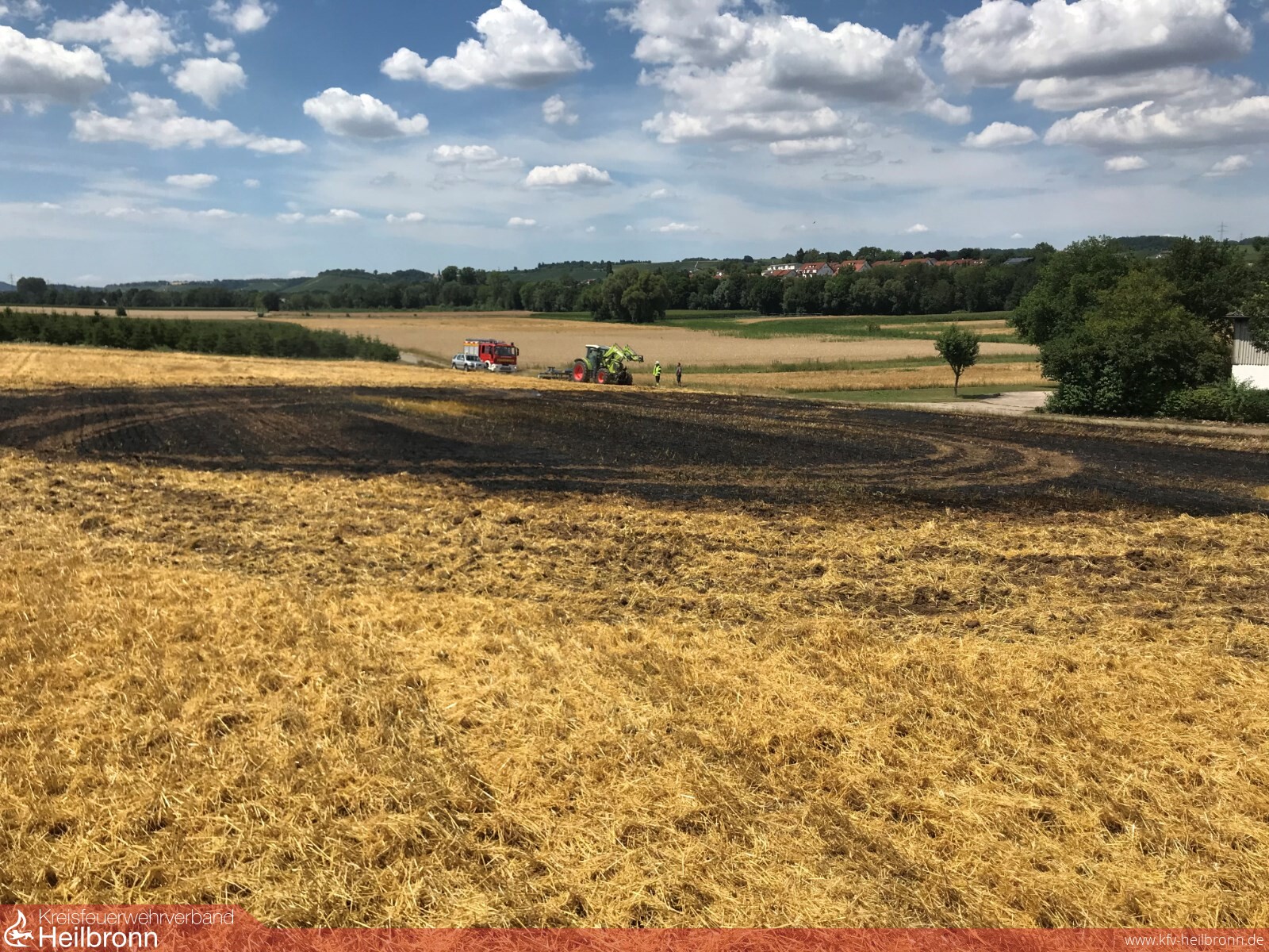 Die Feuerwehr Cleebronn wurde am frühen Nachmittag zu einen Flächenbrand auf einem Stoppelfeld gerufen. Die Ackerfläche liegt direkt am Verbindungsfeldweg zwischen Cleebronn und Güglingen und genau zwischen zwei Aussiedlerhöfen. Aufgrund der Lage im Aussenbereich, sowie der Brandausbreitung auf einigen hundert Quadratmetern Fläche wurde zusätzlich die Feuerwehr Güglingen alarmiert.