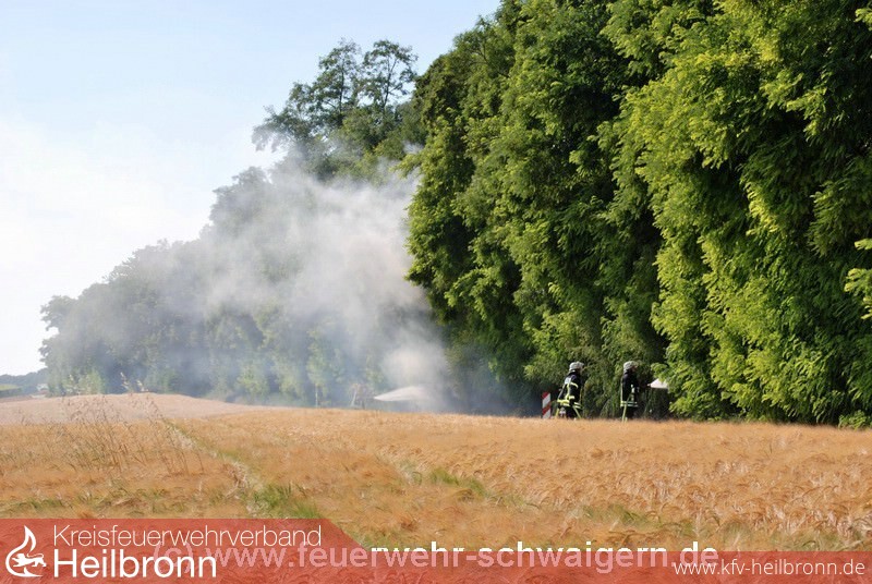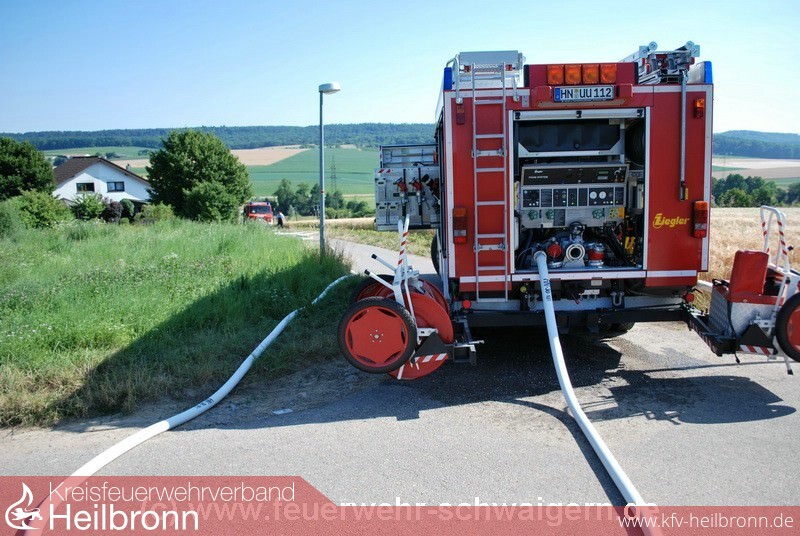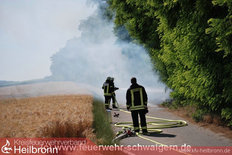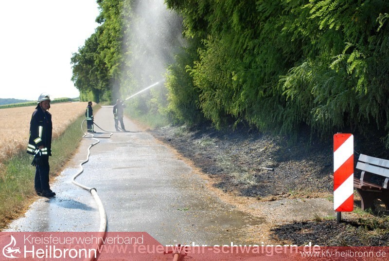 Dort brannte in der Böschung auf einer Länge von etwa 50 Meter das Unterholz. Zum Glück hatte das Feuer noch nicht auf ein reifes Gerstenfeld direkt auf der anderen Wegseite übergegriffen. Zur Brandbekämpfung wurden von der Besatzung des HLF 20 3 C-Rohre eingesetzt, mit denen das Feuer von beiden Seiten bekämpft wurde. Die Besatzung des LF 8 stellte die Wasserversorgung über einen ca. 100m entfernten Hydrant im Wohngebiet Leidensberg sicher.