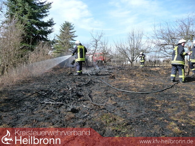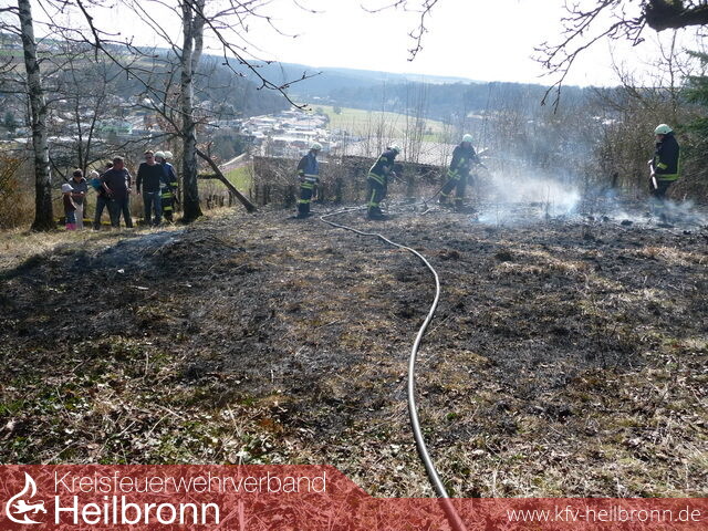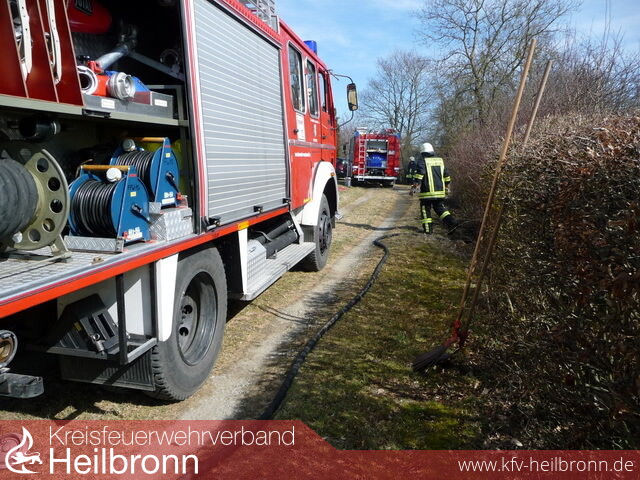 Zu einem Flächenbrand, bei welchem auch ein benachbartes Wochenendhaus gefährdet war, wurde die Abteilung Möckmühl alarmiert.