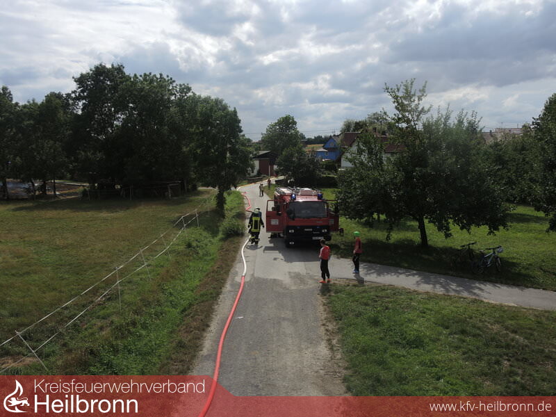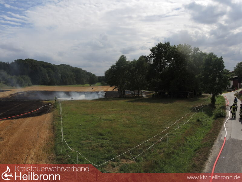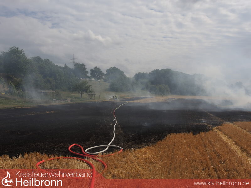 Die Feuerwehr Ilsfeld wurde zu einem Flächenbrand nach Wüstenhausen alarmiert. Beim eintreffen des ersten Fahrzeuges brannten bereits mehrere 100 m2 eines abgedroschenen Ackers. Aufgrund des Windes breitete sich das Feuer rasend schnell aus. Damit sich das Feuer nicht weiter ausbreiten konnte wurde es mit einer Riegelstellung von zwei Seiten mit dem Löschfahrzeug LF20, dem Hilfeleistungslöschfahrzeug HLF20/20 und 6 Mann unter Atemschutz abgelöscht. Zur Sicherheit wurde der Acker vom betroffenen Landwirt mit einem Traktor noch umgegrubbert.