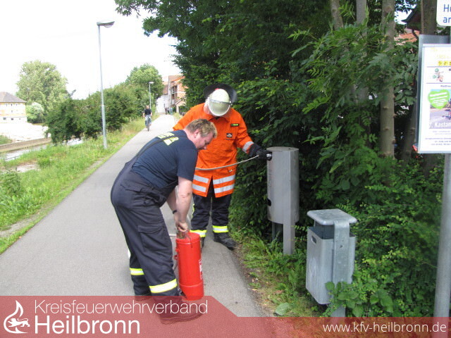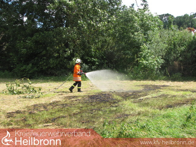 Wir waren noch mit der Nachbereitung des Großbrandes in Degmarn beschäftigt, als wir zu einem Flächenbrand im Bereich der Kocherbrücke, sowie Brand eines Mülleimers am Radweg alarmiert wurden. Der Flächenbrand mit ca. 50m² wurde mit einem C-Rohr und der Mülleimer mit Kleinlöschgerät abgelöscht.