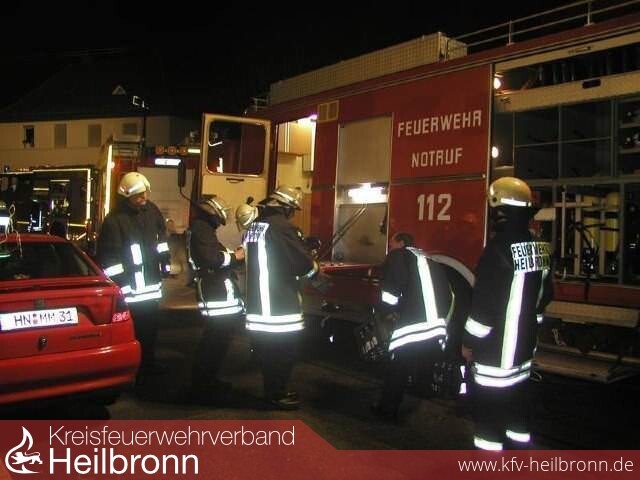 Die Berufsfeuerwehr Heilbronn war mit einem Löschzug, 2 LF 16 und 32 Mann vor Ort. Das DRK war mit einem Notarztwagen und 2 RTW sowie 6 Mann im