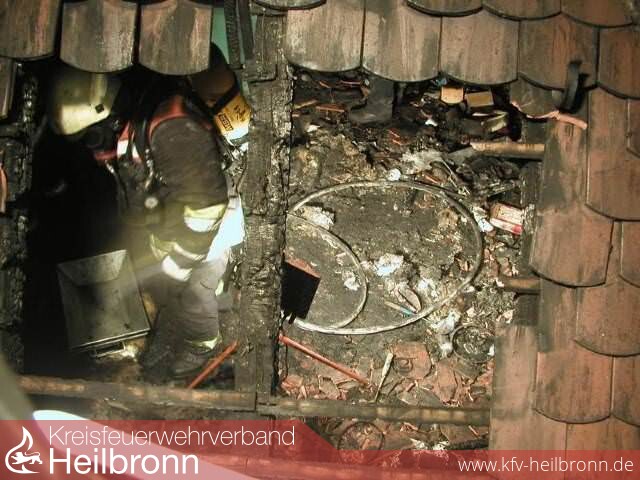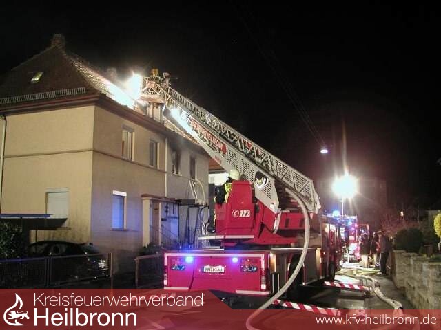 Gegen 02.05 Uhr kam es in einer Doppelhaushälfte in der Heilbronner Hauffstrasse zu einem Dachstuhlbrand.