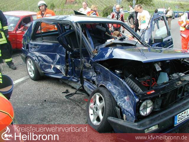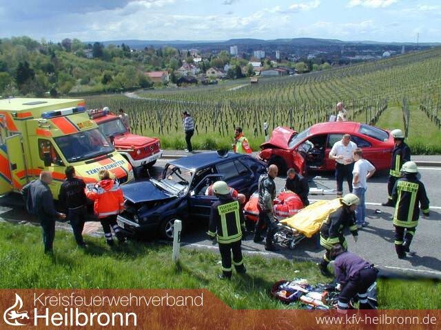 Ein aus Richtung Heilbronn kommender Golf Fahrer kam aus noch ungeklärter Ursache ins Schleudern, geriet in den Gegenverkehr und prallte dort gegen einen entgegenkommenden Mazda. Auf die beiden verunfallten Fahrzeuge fuhr anschließend der Lenker eines Motorrades auf.