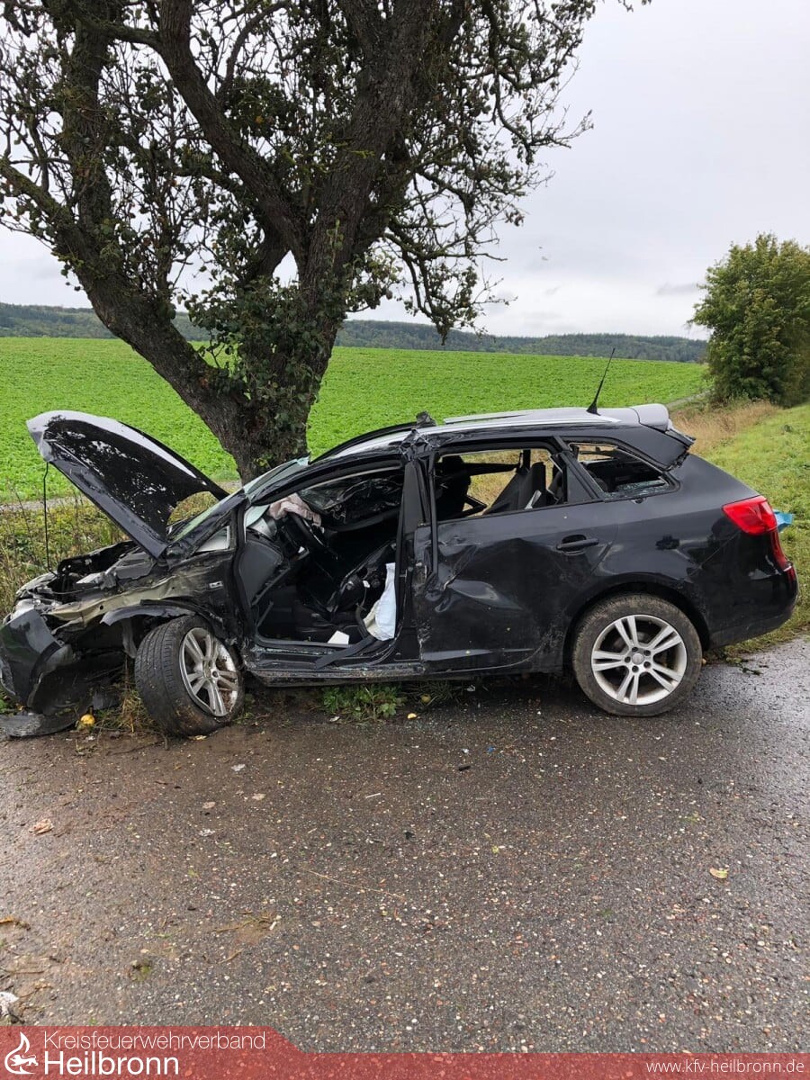 Frontal gegen einen Baum prallte der PKW einer Frau am Mittwochmittag. Die 64-Jährige war mit ihrem Seat von Eppingen in