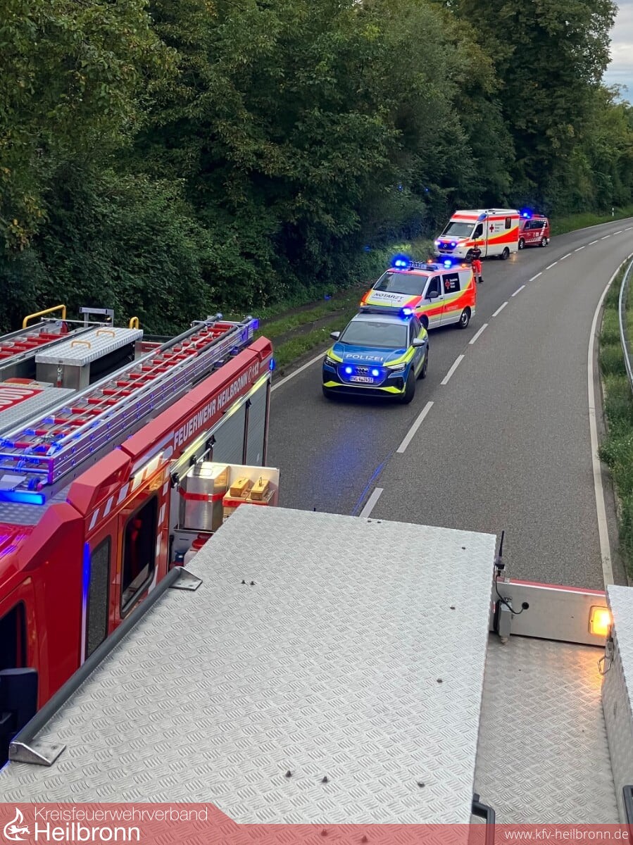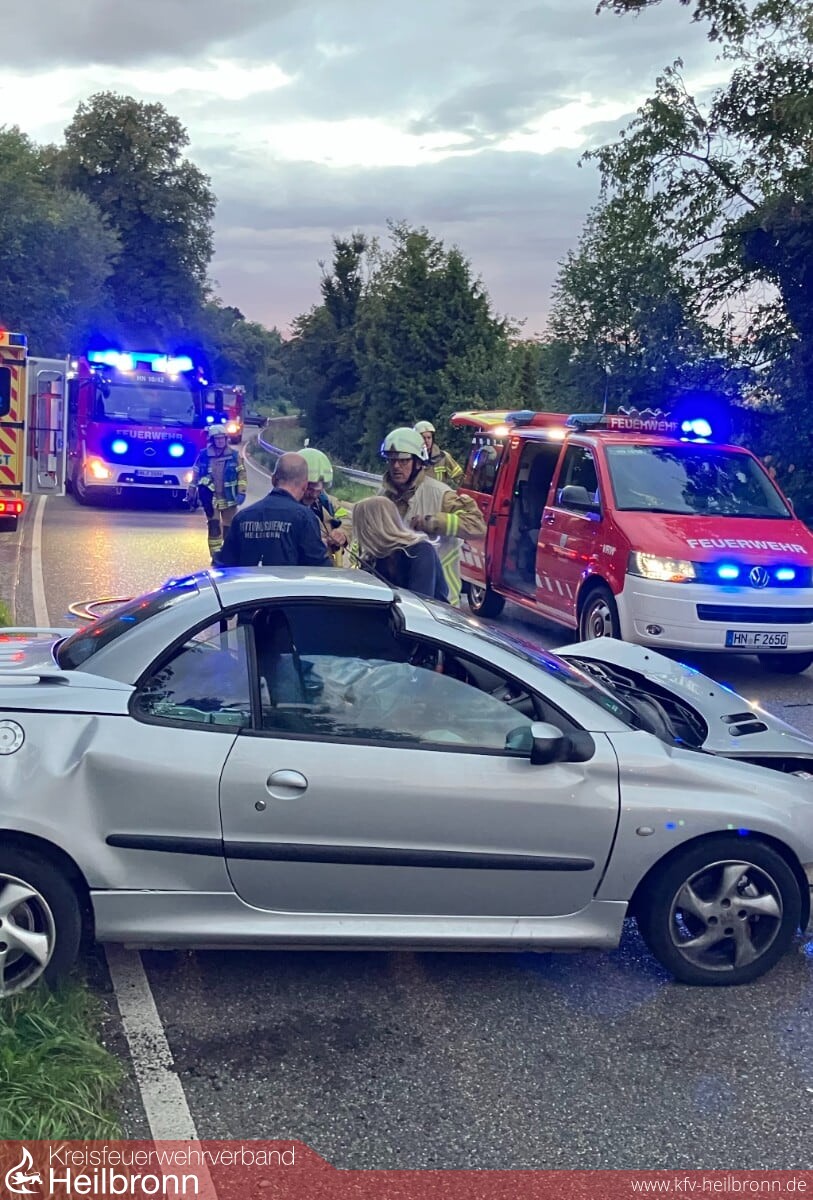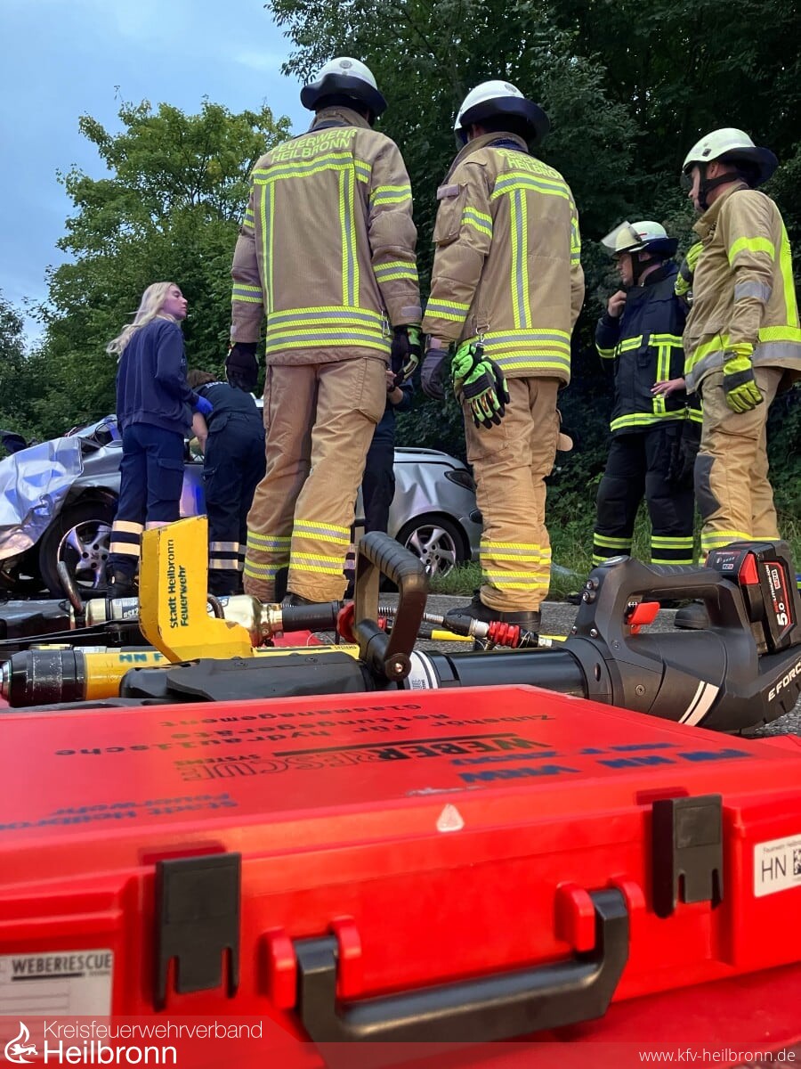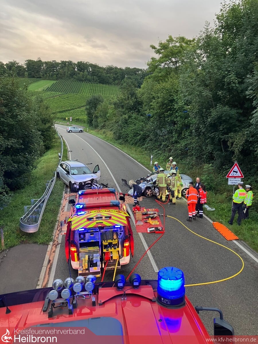 Am heutigen Donnerstag kam es kurz vor 7 Uhr zu einem Verkehrsunfall auf der B 39 in Fahrtrichtung Weinsberg. Zwei Fahrzeuge waren in einer langgezogenen Kurve kurz nach Ortsausgang Heilbronn frontal zusammengestoßen. Hierbei wurde eine Person im Fahrzeug eingeklemmt und musste von der Feuerwehr mit technischen Rettungsgeräten befreit werden. Eine weitere, am Unfall beteiligte Person erlitt leichte Verletzungen.