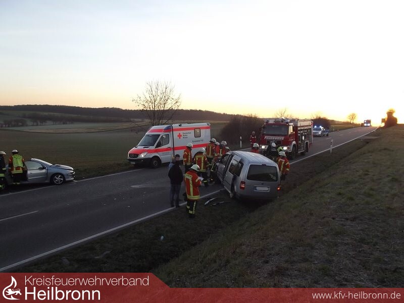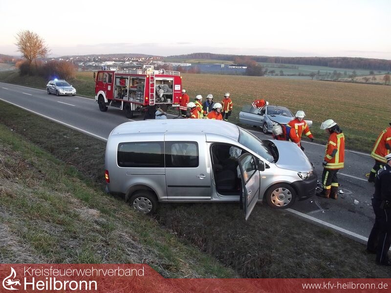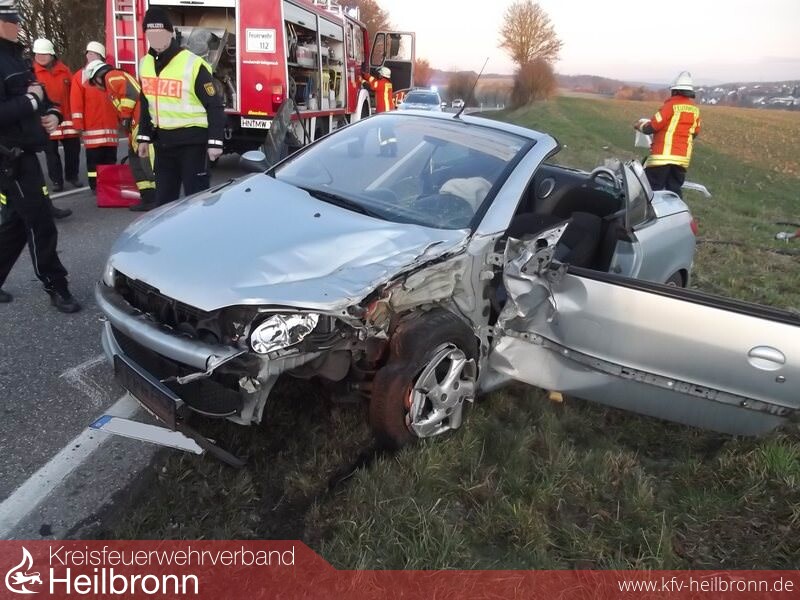 Die PKW-Lenkerin wurde in ihrem Fahrzeug eingeklemmt und musste von den alarmierten Abteilungen Obergimpern und Bad Rappenau mittels hydraulischem Rettungsgerät befreit werden.