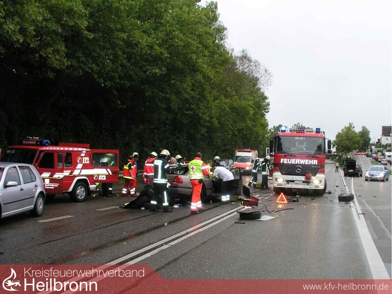 Die Feuerwehr musste den eingeklemmten Mann mit Hilfe von hydraulischen Rettungsgeräten befreien und unterstützte den Rettungsdienst bei der Versorgung der verletzten Personen.