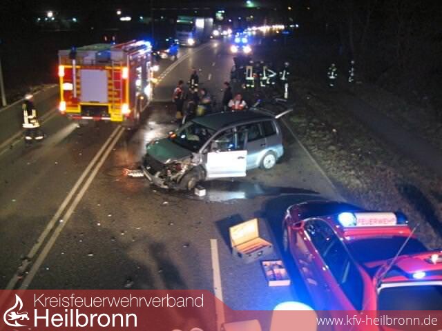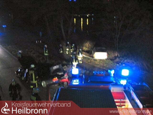 Um ca. 05:47 Uhr am Dienstagmorgen ereignete sich ein schwerer Verkehrsunfall mit drei beteiligten Pkw und einem Lkw auf der Kanalstraße in Neckarsulm. Ein Pkw stieß dabei frontal mit zwei entgegenkommenden Fahrzeugen zusammen. Eines der Fahrzeuge kam daraufhin von der Fahrbahn ab und rollte in das Ufergestrüpp des Neckars. Auch ein Lkw mit Gefahrgut wurde bei der Kollision leicht beschädigt.