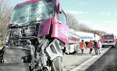 Schon wieder ein schwerer Unfall auf der A 6: Fünf Lastwagen und ein Pkw krachten gestern Vormittag an einem Stauende ineinander. Ein Fahrer wurde schwerst verletzt ins Krankenhaus geflogen.