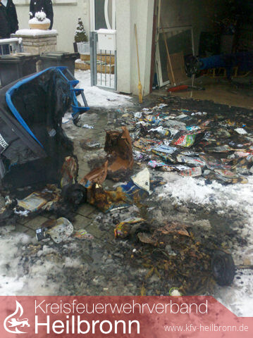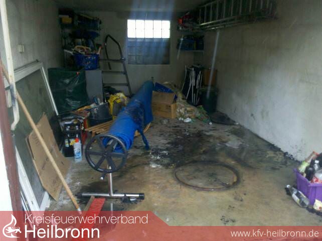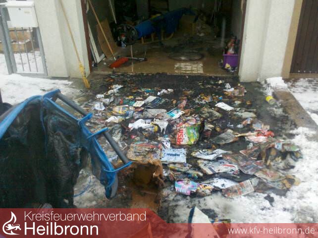 In einer an einen Wohnhaus angebauten Garage entzündete sich die Bio-Tonne und setzte dabei die Papier-Tonne und eine aufgewickelte Kunstoffabdeckung in Brand.Beim Ausrücken kam die Meldung, dass Gefahr droht der Brand könnte auf das Wohnhaus überspringen. Die Tonnen brannten total ab. Beim Eintreffen der ersten Kräften war das Feuer schon fast "schwarz".