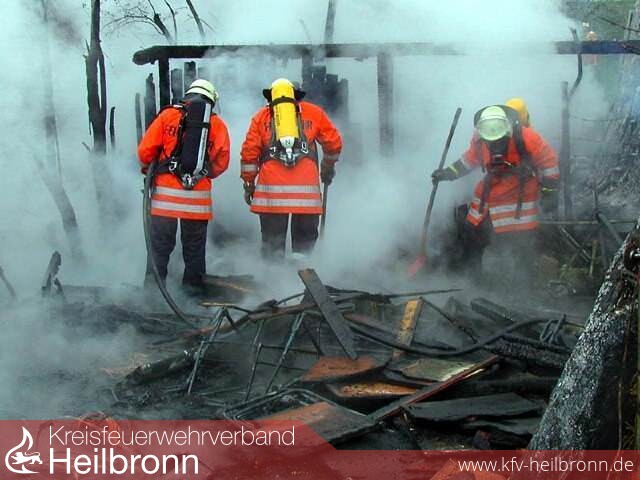 Die Brandbekämpfung gestaltete sich schwierig, da das Dach und Teile der Hütte bereits eingestürtzt waren. Darunter befanden sich unter anderem ein vollgetankter Rasenmäher, sowie weiter Benzinkanister, durch welche es immer wieder zu Rückzündungen kam.
