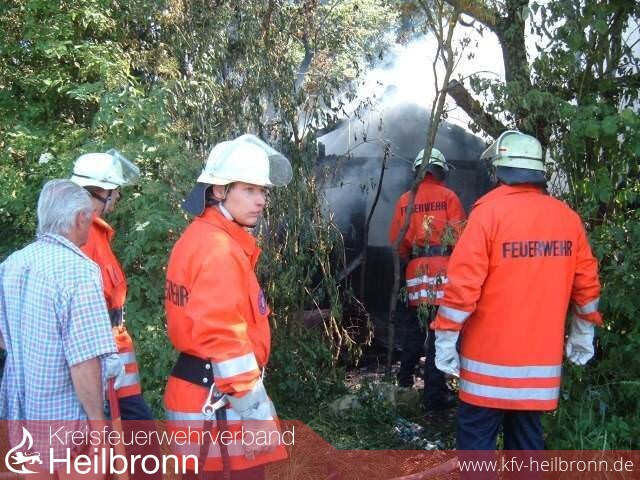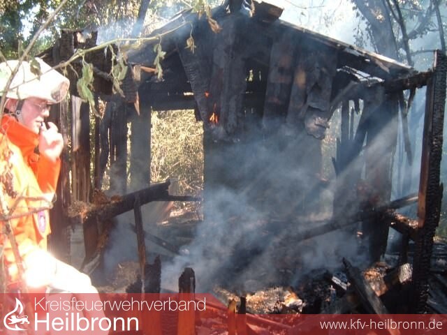 Am Donnerstagnachmittag wurde der Leitstelle in Heilbronn eine brennende Gartenhütte im Gewann „Rosenberger“ in Leingarten gemeldet. Diese alarmierte daraufhin die Feuerwehr Leingarten um 16:03 und 16:07 Uhr über Meldeempfänger.