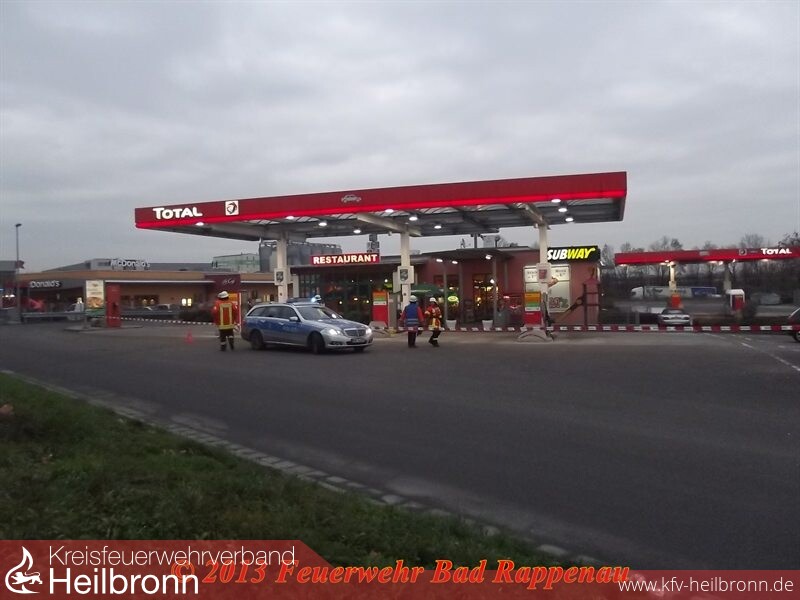 Die beiden bemerkten Gasgeruch im Hausanschlussraum und verständigten umgehend die Feuerwehr. Anschließend veranlassten sie vorbildlich die Räumung des gesamten Autohofes.