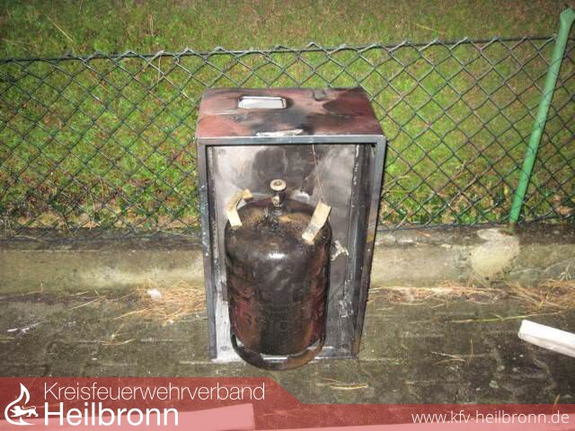 In einem Anbau / Wintergarten in Holzbauweise eines Wohnhauses, Unter der Steig, war aus unbekannter Ursache ein mit Gas betriebener Heizstrahler in Brand geraten. Durch den Hausbesitzer wurde die brennende Gasflasche mit Gestell ins Freie, in den Hof gebracht. Dabei erlitt er leichte Brandverletzungen. Drei weitere anwesende Personen im Raum, darunter zwei stark gehbehinderte , wurden nicht verletzt. Im Hof brannte der Innhalt der Gasflasche über das offene Ventil weiter. Die Holzverkleidung des Wintergartens wurde dabei von außen durch das Feuer in Mitleidenschaft gezogen. Es entstand ein Gebäudeschaden.Durch sein schnelles Handeln hat der Hausbesitzer ein Feuer im Haus verhindert.Durch die Feuerwehrabteilung Mühlbach wurde das Gebäude kontrolliert und gelüftet.Die brennende Gasflasche mit Wasser gekühlt und kontrolliert zum Abbrennen gebracht.Mit der Wärmebildkamera aus Eppingen wurden die Holzverkleidung und die Gasflasche auf Wärmestrahlung kontrolliert.Polizei, Rettungsdienst und der DRK Ortsverein Mühlbach waren mit insgesamt 10 Einsatzkräften Vorort.Neben der Abteilung Mühlbach mit LF 8/6 und TSF sowie 24 Mann war die Abteilung Eppingen mit ELW, LF 16/12, DLK und 16 Mann im Einsatz.