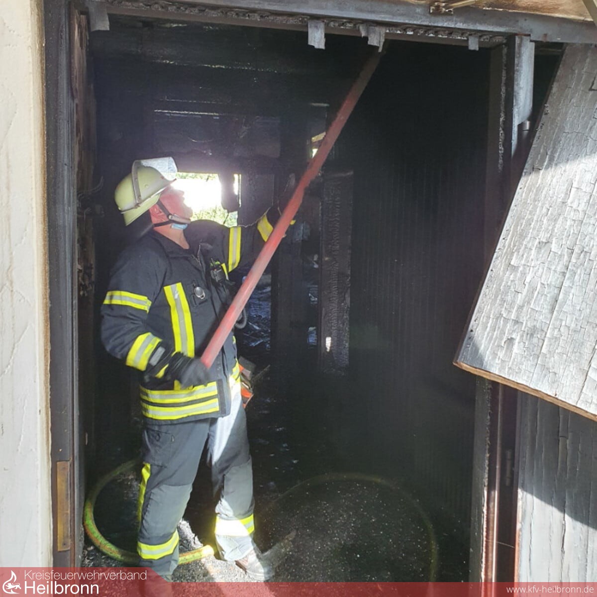 Da hinsichtlich der sommerlichen Temperaturen die Belastung für die Atemschutzgeräteträger extrem hoch war, wurden zudem die Wehren aus Neckarwestheim, Nordheim und Talheim mit Atemschutzgeräteträgern zur Unterstützung angefordert. Durch das massive Vorgehen konnte der Brand unter Kontrolle gebracht werden. Erschwerend bei der Brandbekämpfung ist hier die Tatsache dazu gekommen, dass es sich bei der Bauweise des alten Gebäudes um eine Holzbauweise mit Zwischendecken gehandelt hat, welche mit Schlacke und Stroh aufgefüllt waren.