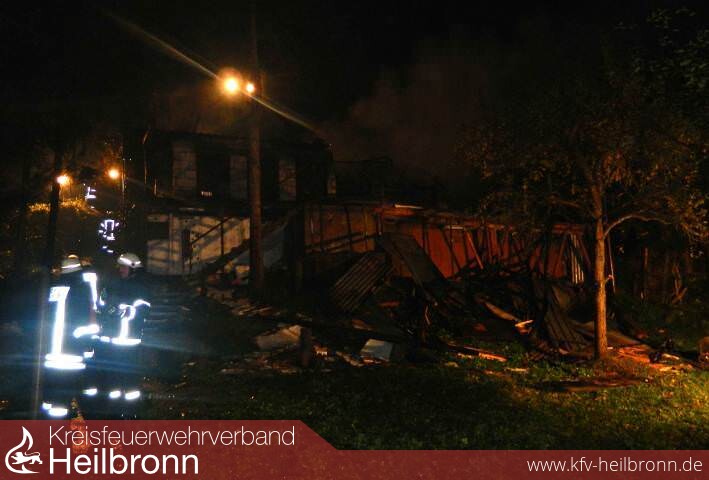 Vor Ort brannte ein ca. 18m x 12m großes Gartenhaus in voller Ausdehnung. Die unter Atemschutz vorgehenden Einsatzkräfte konnten das Feuer in dem massiv errichteten Gebäude rasch eindämmen und ablöschen. Die Nachlöscharbeiten gestalteten sich aufgrund der großen Mengen von Brandschutt sehr zeitaufwendig.