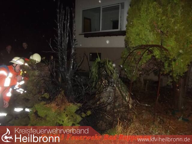 Bei Eintreffen an der Einsatzstelle konnte rasch Entwarnung gegeben werden. Im Garten hinter dem Wonhaus hatte ein Nadelbaum aus ungeklärter Ursache gebrannt.