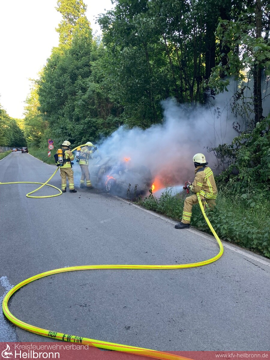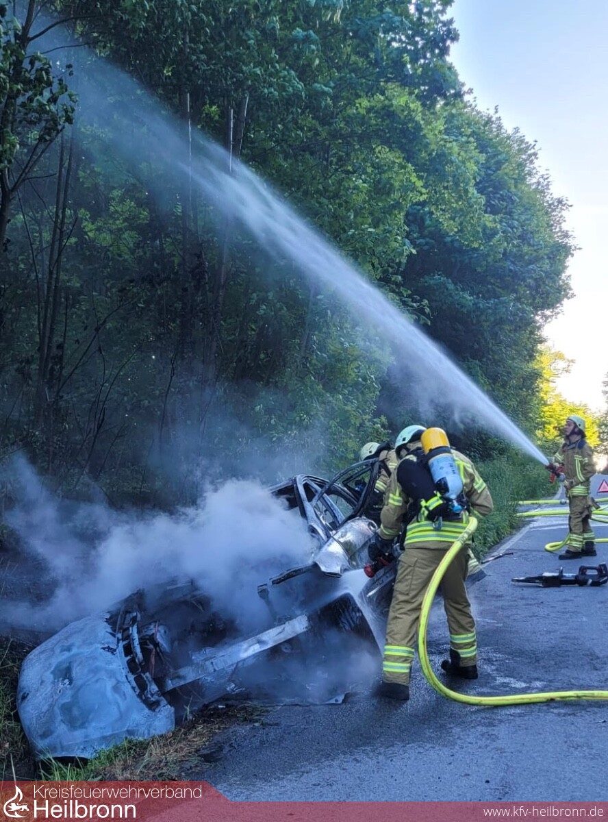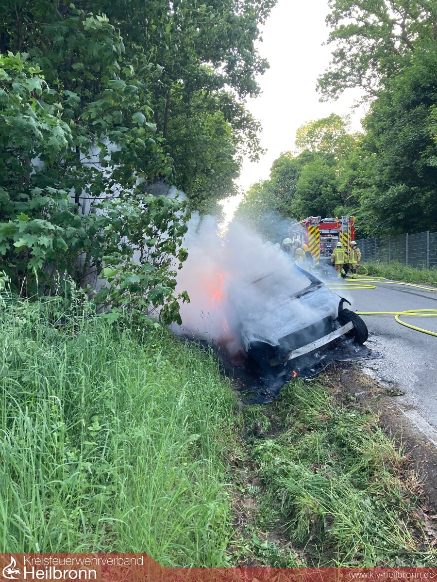 Auf der Zufahrtsstraße zum Wartberg ereignete sich um 19.19 Uhr ein Unfall mit einem Totalschaden an dem Fahrzeug. Der Fahrer war wohl einem Kleintier ausgewichen und hierbei in den Straßengraben gefahren. Dabei geriet der Wagen in Brand. Die Feuerwehr konnte die Flammen rasch löschen. Um den Pkw vollständig abzulöschen, musste er mit der maschinellen Zugeinrichtung des Unimogs herausgezogen werden. Die Löscheinrichtung dieses Einsatzfahrzeuges kam auch neben einem weiteren Fahrzeug zum Ablöschen der ebenfalls in Brand geratenen Vegetation zum Einsatz. Der Fahranfänger blieb bei dem Unfall unverletzt.