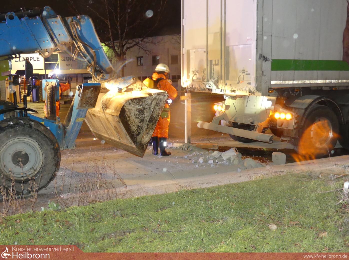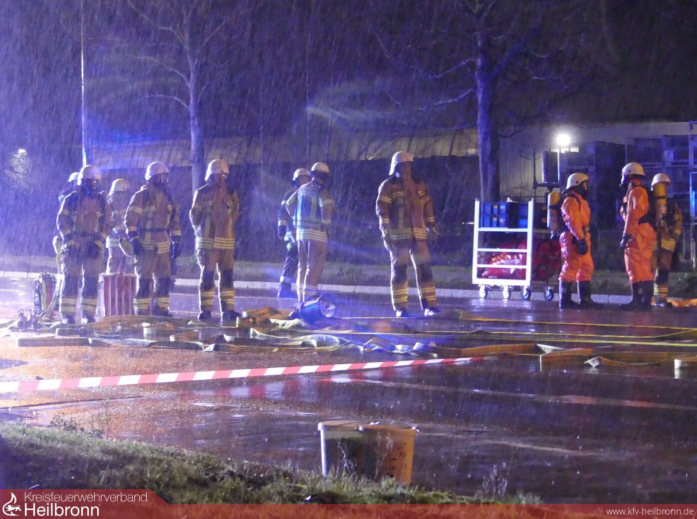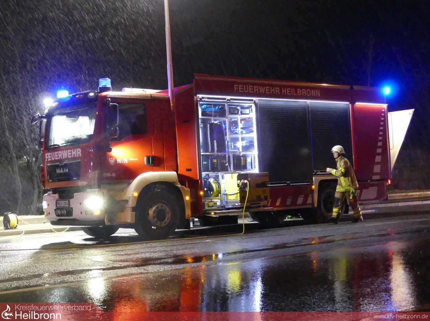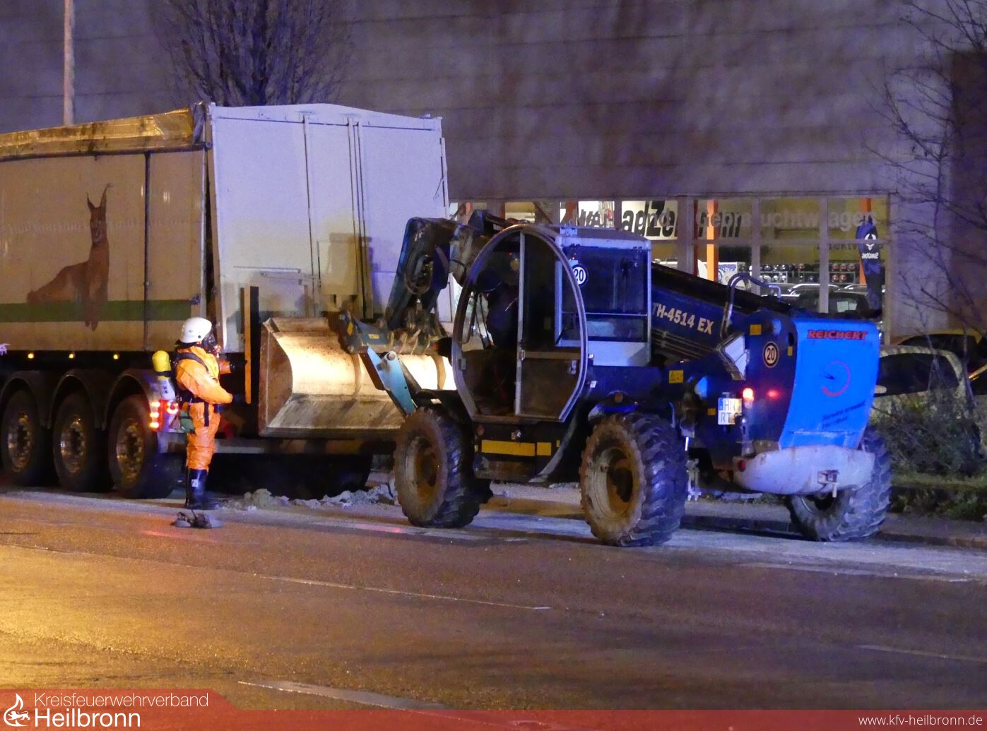 Um 18.09 Uhr wurde der Integrierten Leitstelle für Feuerwehr und Rettungsdienst ein Gefahrstoffaustritt an einem LKW auf der Karl-Wüst-Straße gemeldet. Beim Eintreffen an der Einsatzstelle konnte eine teilweise geöffnete Ladeklappe am Heck eines mit Gefahrstoff beladenen LKW festgestellt werden. Geringe Mengen eines lösungsmittelhaltigen Mischabfalls hatten sich auf der Fahrbahn verteilt. Die Feuerwehr sperrte die Einsatzstelle weiträumig ab, sicherte diese und dämmte die ausgetretenen Stoffe ein. Auch die Ladeklappe des Lkw konnte unter zur Hilfenahme eines Teleskopstaplers wieder ordnungsgemäß verschlossen und ein weiterer Austritt verhindert werden. Der ausgetretene Abfall wurde ordnungsgemäß aufgenommen. Abschließend führte eine Fachfirma eine Nassreinigung der betroffenen Fahrspuren durch. Im Einsatz waren neben dem Gefahrgutzug der Berufsfeuerwehr, die Freiwillige Feuerwehr Heilbronn -Stadt- sowie die der Abteilungen Frankenbach und Neckargartach.