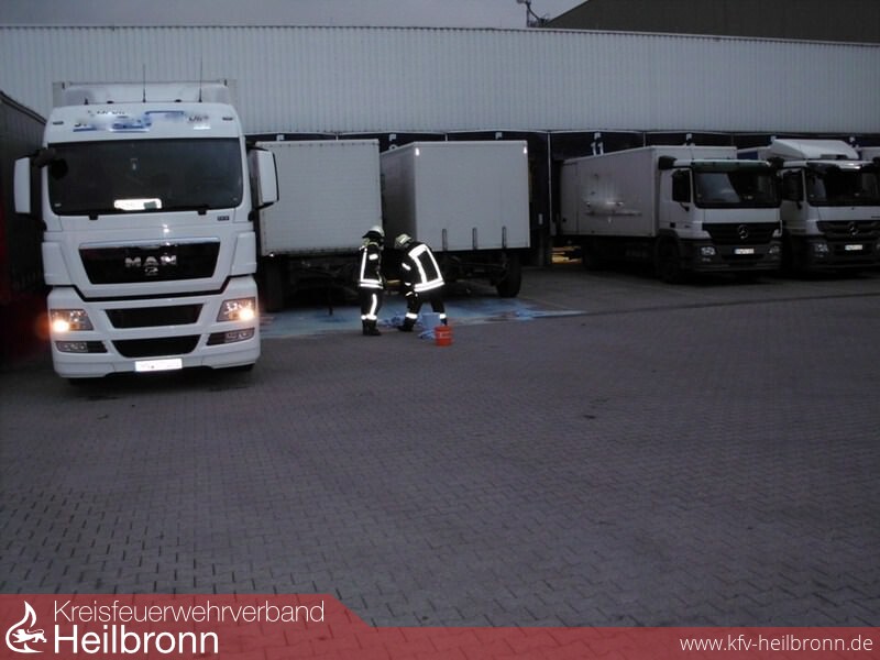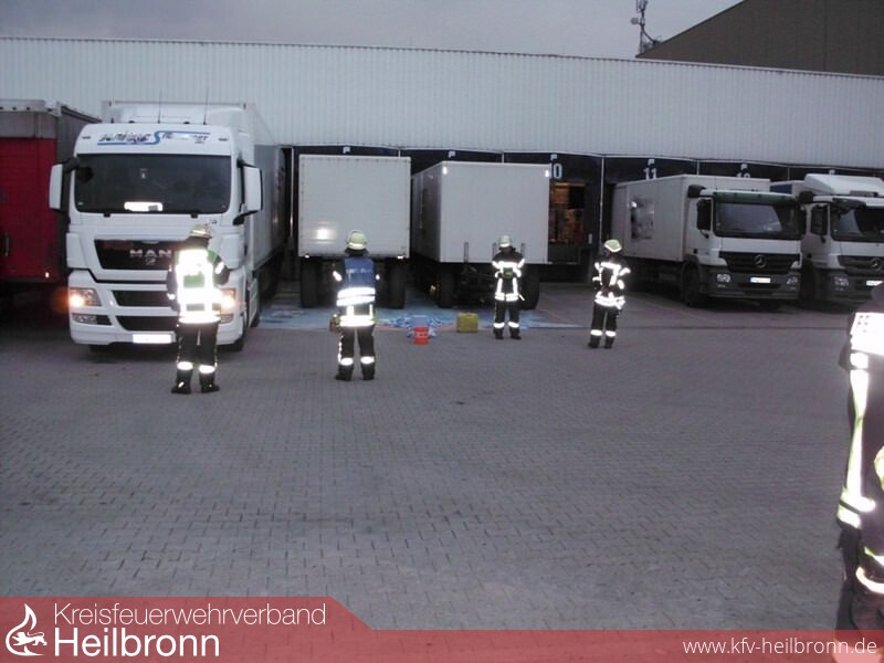 Am 28.05.2013 wurde die Freiwillige Feuerwehr Talheim um 20:26 Uhr mit der Meldung "Gefahrgut" zu einer Firma im Talheimer Industriegebiet alarmiert. Beim Entladen eines IBC Container wurde dieser durch eine Beschädigung der Ladebordwand des LKW Anhängers seitlich aufgerissen. Hierdurch kam es dazu dass ca. 750Liter der 1000Liter Gefahrgut austraten, welche sich auf der Hänger fläche und dem darunter befindlichen Vorplatz der Entladerampe. Ein Kanaldeckel wurde vom Betriebspersonal umsichtiger weiße abgedeckt. Die um 20:32 Uhr am Einsatzort eintreffenden Kräfte aus Talheim erkundeten erst die Einsatzstelle und sicherten das Areal. Ein Trupp ging unter Atemschutz bis zum beschädigten Container vor um die Notwenigen Gefahrstoffunterlagen für den mittlerweile am Einsatzort eingetroffenen GW-MESS aus Lauffen zu sichern.