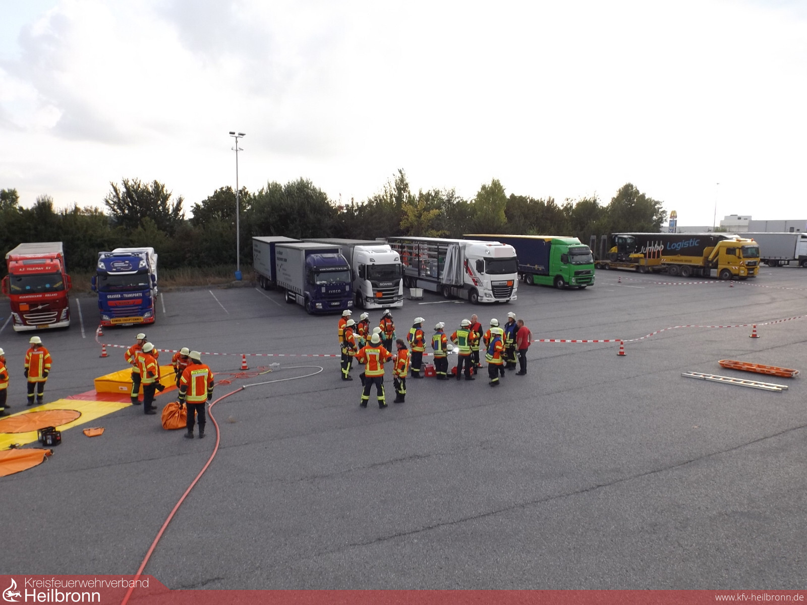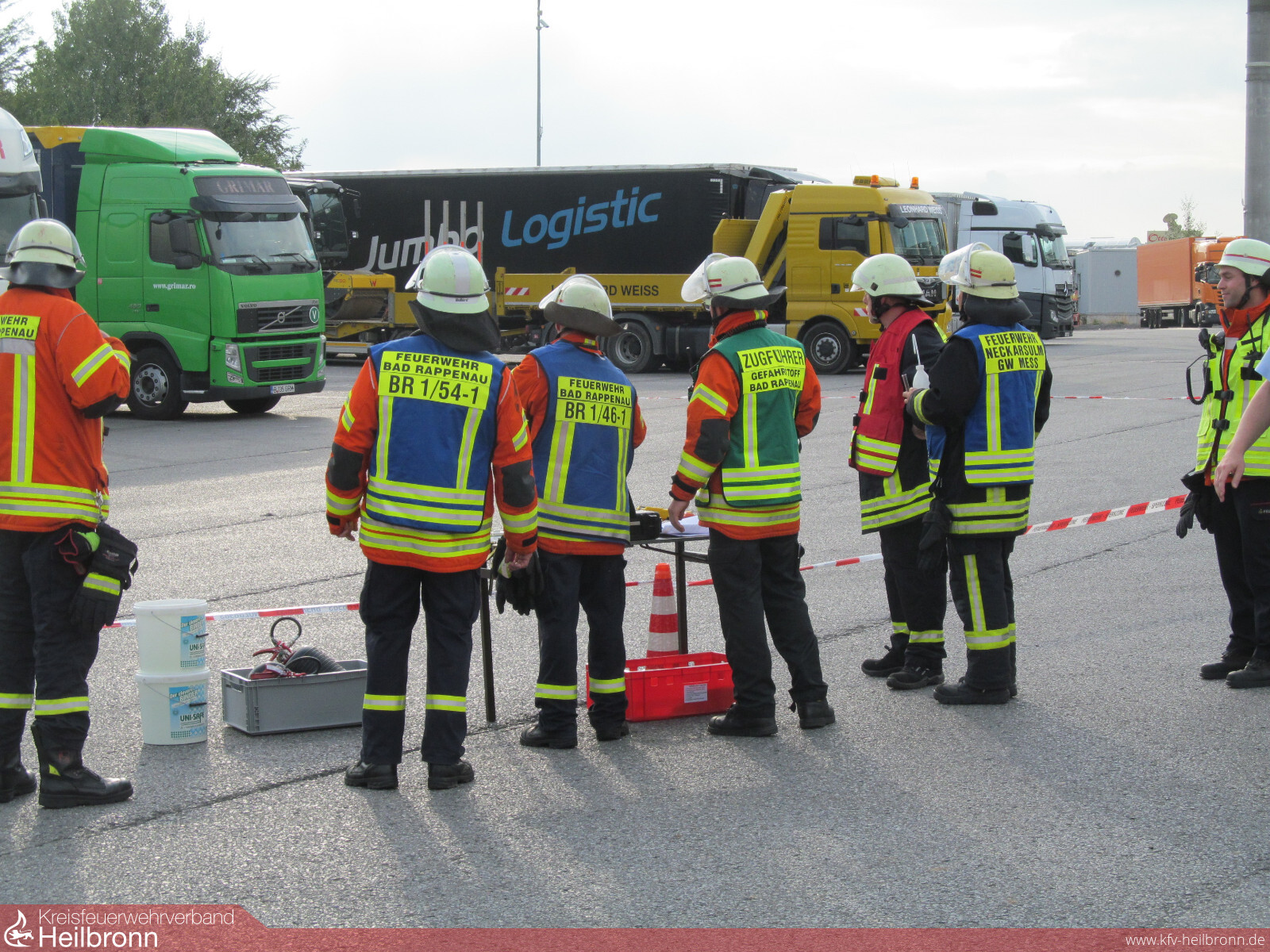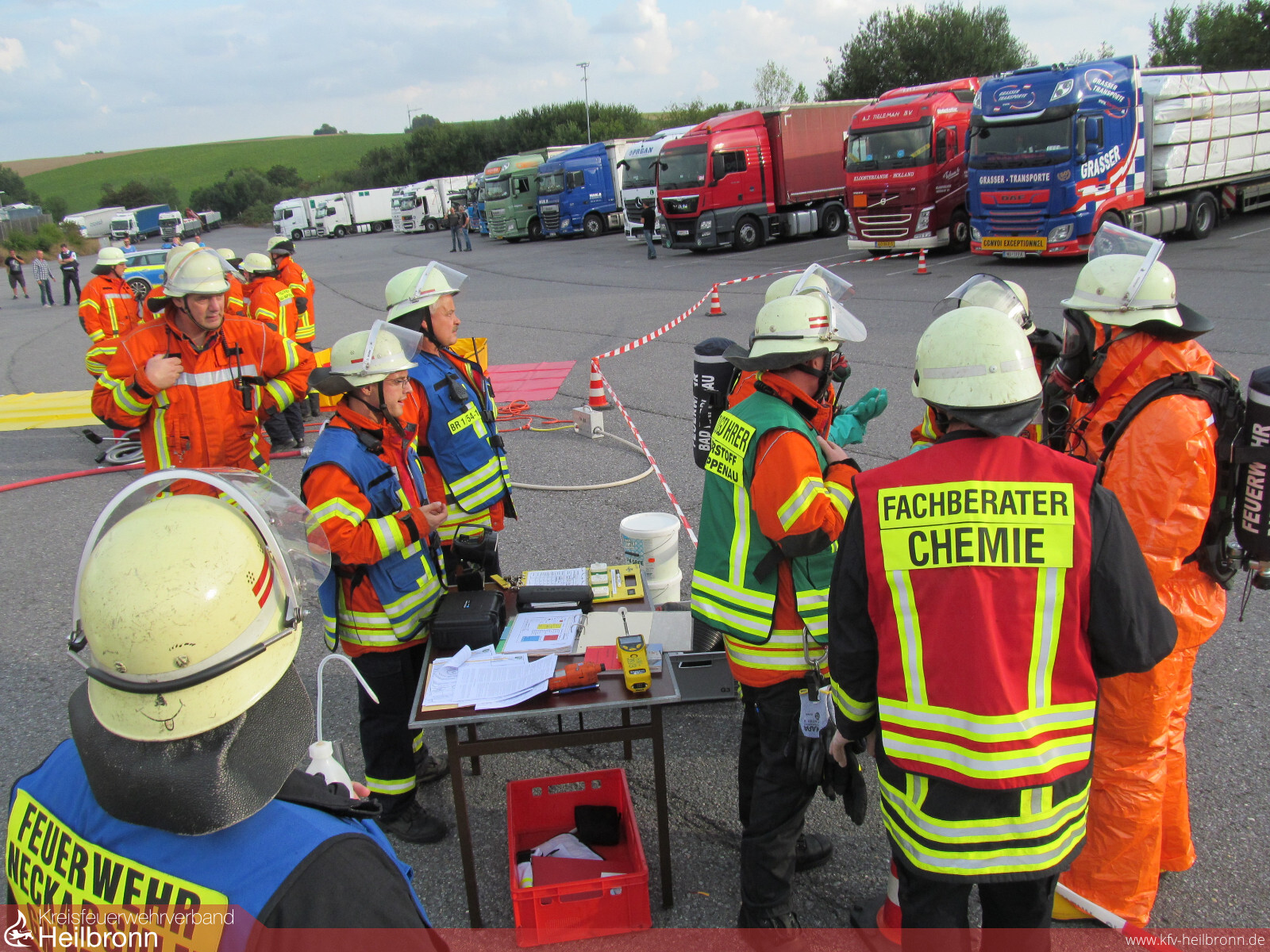 Mit dem Alarmstichwort „Gefahrguteinsatz“ wurden die Abteilungen Bad Rappenau, Fürfeld, Bonfeld, Babstadt, Heinsheim sowie die Freiwillige Feuerwehr Neckarsulm in das Gewerbegebiet Buchäckerring in Bonfeld alarmiert. Ein Anrufer meldete, dass aus einem LKW eine weiße, schäumende Flüssigkeit austritt.
