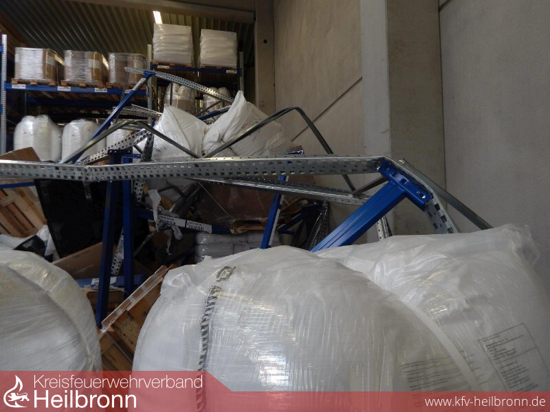 Hierdurch rutschten 220 Paletten mit insgesamt 170 Tonnen Lagerware von den Regalböden. Bei der Lagerware handelte es sich vorwiegend um Kunststoffsäcke mit Gefahrstoffen.