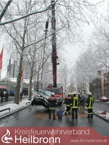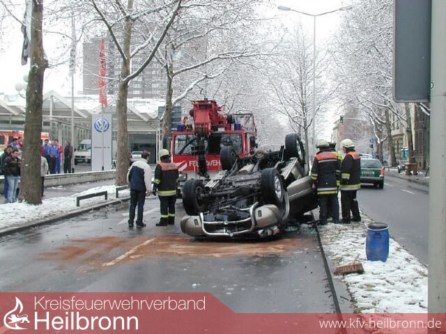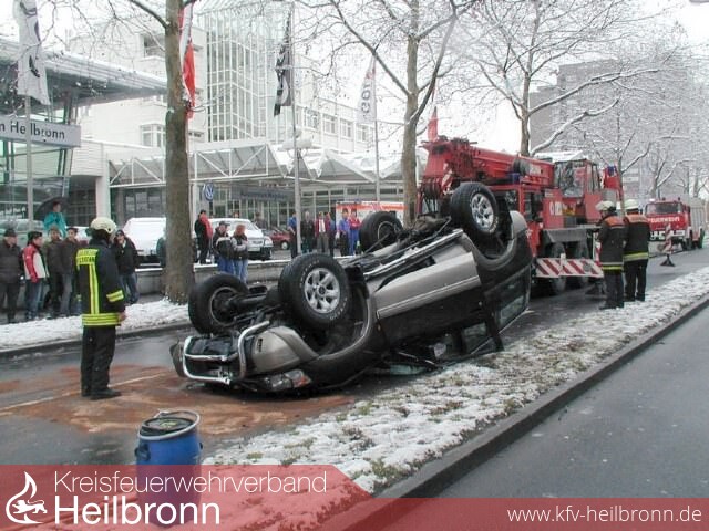 Der Wagen wurde von der Heilbronner Berufsfeuerwehr mit dem Feuerwehrkran wieder auf die Räder gestellt, damit er abtransportiert werden konnte. Auslaufendes Öl wurde mit Bindemittel aufgenommen und die Fahrbahn gereinigt.