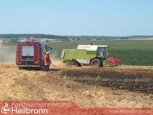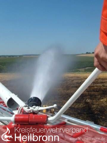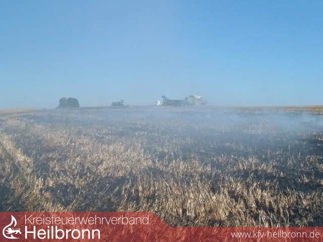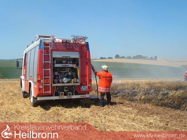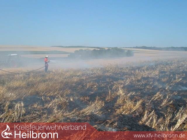 Die Feuewehrleitstelle Heilbronn alarmierte daraufhin um 14:06 Uhr die Feuerwehr Leingarten über die große Schleife der Funkmeldeempfänger. Beim Eintreffen der mit dem TLF ausgerückten Kameraden hatten die anwesenden Landwirte bereits mit deren Arbeitsmaschinen (Grubber) eine weitere Ausbreitung des Feuers verhindert. Der Brand wurde von der Feuerwehr mittels Schnellangriffsschlauch und Wasserwerfer des TLF vollends abgelöscht.