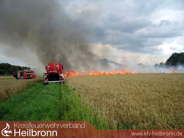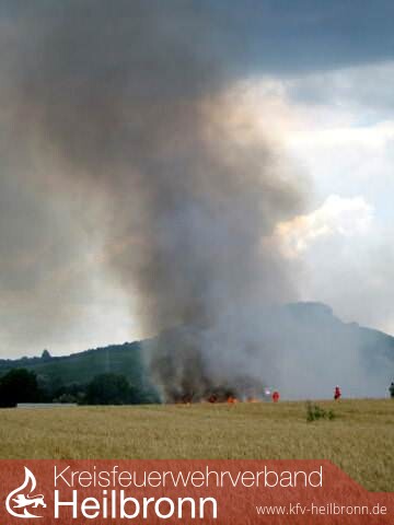 Neben der Bundesautobahn A6 bei Erlenbach brannte ein Gerstenfeld.