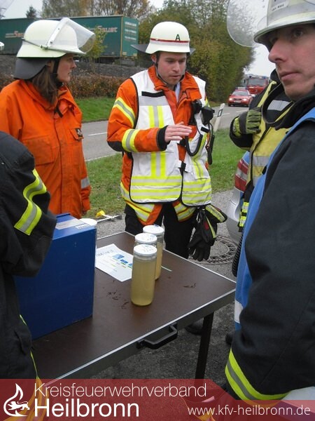 Die Verunreinigung wurde durch einen örtlichen Entsorgungsbetrieb gespült sowie durch einen parallel geöffneten Notablauf entfernt. Durch die Einsatzleitung bestehend aus Wasserschutzpolizei, Feuerwehr, Mitarbeiter der Stadtentwässerung sowie der Unteren Wasserbehörde und den Fachberatern Chemie der Feuerwehr konnte gegen 12.30 Uhr der Einsatz beendet und vor allem Entwarnung gegeben werden. Verschiedene Einrichtungen wie Bügermeister und Fischereivereine der Leinbachgemeinden sowie die Kläranlage Heilbronn wurden informiert. Im Einsatz waren die Abteilungen Kleingartach und Eppingen, sowie die Wehren aus Schwaigern, Lauffen a.N. mit dem GW Mess, Kommandowagen und ELW, der komplette Gefahrstoffzug für den westlichen Landkreis gestellt durch die Feuerwehr Bad Rappenau, zwei Fachberater Chemie, die Wasserschutzpolizei Heilbronn, die Untere Wasserbehörde des Landkreises Heilbronn sowie der zuständige Mitarbeiter der Stadtentwässerung Eppingen.