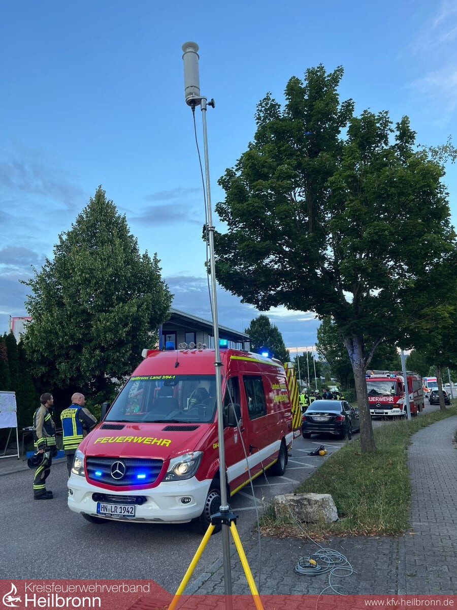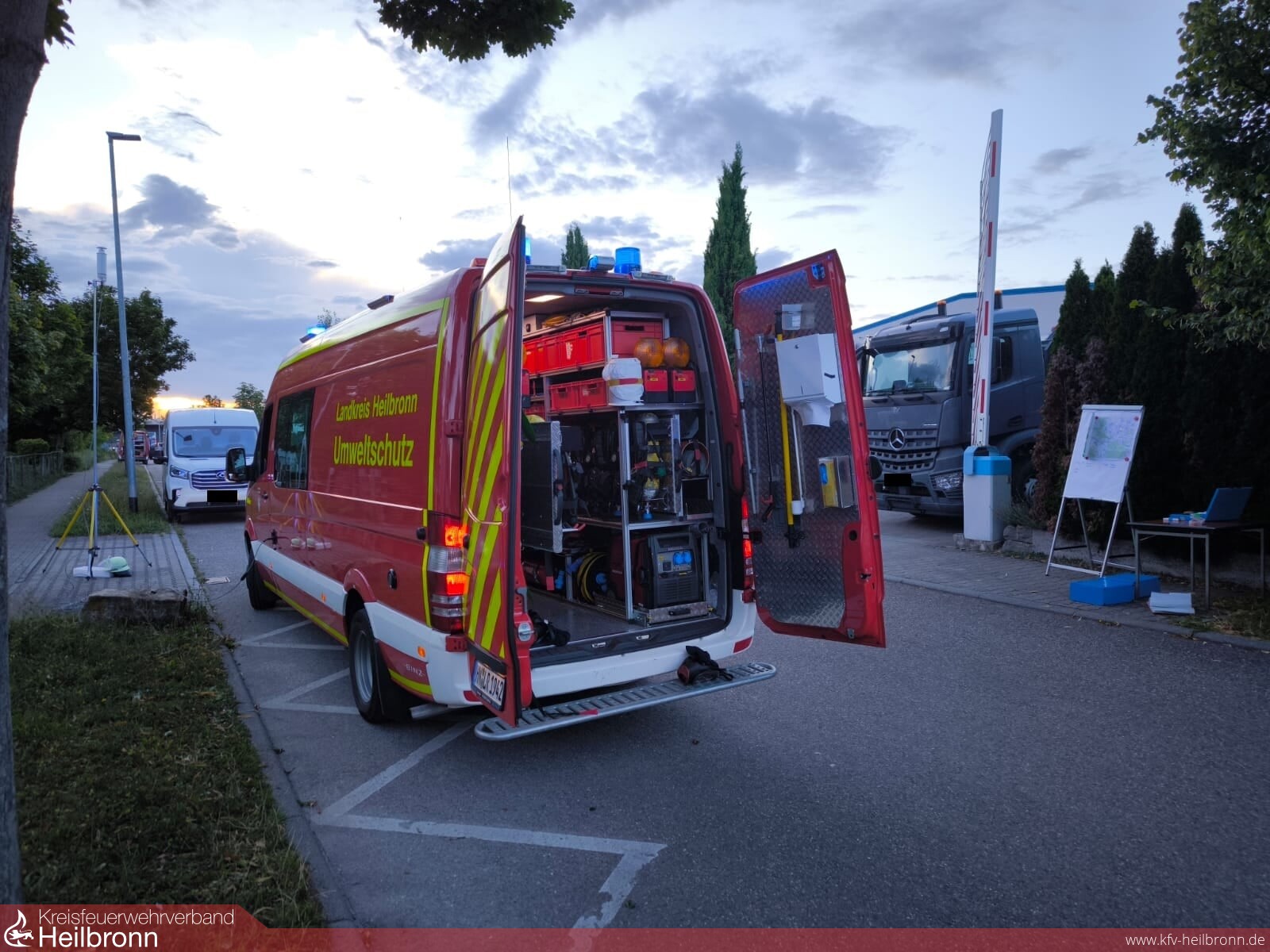 Die Feuerwehr Obersulm war mit den Abteilungen 1, 2 und Sülzbach, die Feuerwehr Weinsberg mit dem neuen Abrollbehälter Gefahrgut auf einem Wechselladerfahrzeug sowie dem Rüstwagen und die Feuerwehr Neckarsulm mit der Fachgruppe Messtechnik im Einsatz.