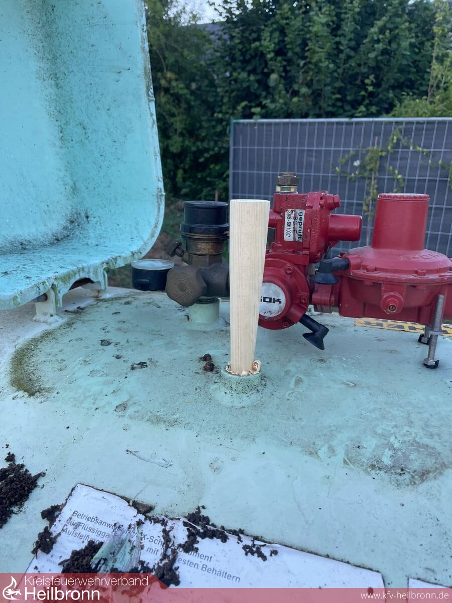 Der Flüssiggastank wurde von einem feuerwehreigenen Flaschnermeister provisorisch verschlossen, damit sich das bei Normaldruck noch im Tank verbliebene Gas nicht ausbreiten oder entzünden kann.