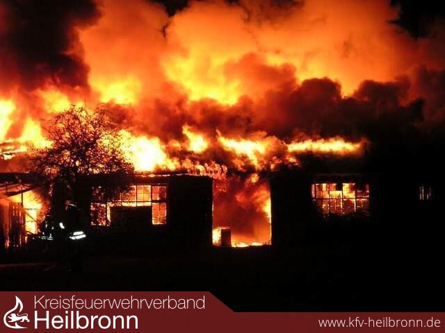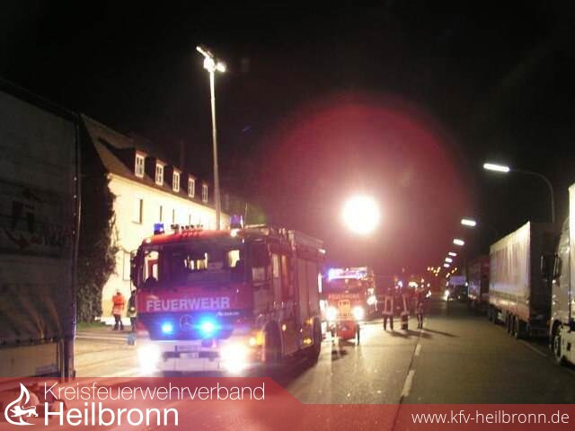 Über 20 Bürgerinnen und Bürger meldeten über Notruf 112 gegen 22.30 Uhr den Brand eines Gebäudes in der Heilbronner Austraße.