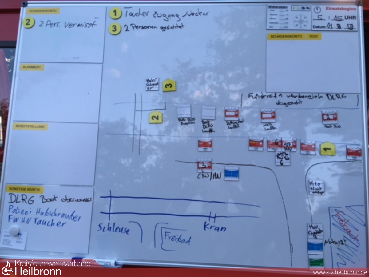 Beteiligte Einsatzkräfte: Feuerwehr Lauffen; BF Heilbronn; ASB; Notarzt; Polizei; Polizeihubschrauberstaffel; DLRG Lauffen, Bad Rappenau, Gundelsheim, Ilsfeld, Möckmühl, Oedheim