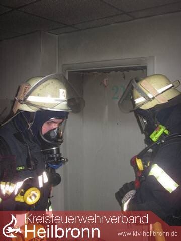 Der Wohnungsinhaberin sind beim Betreten der Wohnung Flammen entgegengeschlagen, sie hat die Wohnungstüre sofort wieder verschlossen und die Anwohner im Gebäude verständigt. Mit mobilen Rauchvorhängen wurde die Rauchausbreitung vom Flur auf die Treppenhäuser verhindert. Ein Trupp unter Atemschutz ging, geschützt durch einen mobilen Rauchabschluss, vom Flur in die Brandwohnung vor. Die angrenzenden Wohnungen wurden mit der Wärmebildkamera kontrolliert. Während des Einsatzes hatten einige Bewohner Rauchgase eingeatmet, 4 Bewohner wurden vorsorglich in Krankenhäuser eingewiesen. Nach dem Belüften konnte ein Teil der Bewohner wieder zurück in ihre Wohnungen, einige sind über Nacht bei Angehörigen untergekommen.
