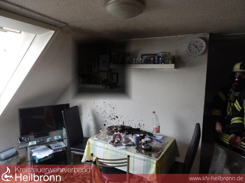 Nachdem die Wohnungstür mit Spezialwerkzeug geöffnet war, konnte ein Feuer auf dem Wohnzimmertisch als Ursache festgestellt werden. Vermutlich hatte eine vergessene Kerze den Brand ausgelöst.
