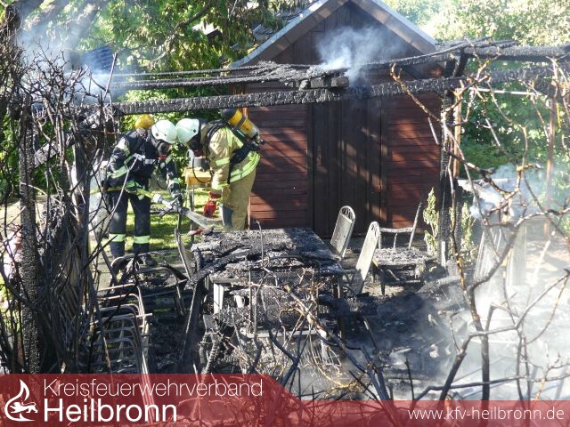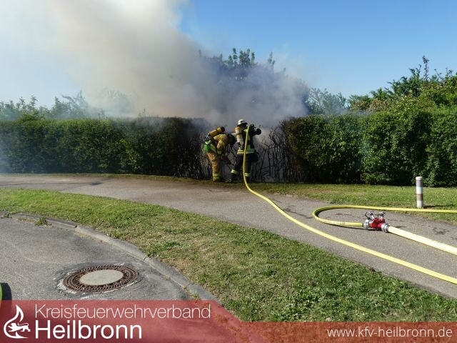 Gegen 17:05 Uhr rückte der Löschzug zum Brand einer Pergola in die dicht bebaute Kleingartenanlage nach Heilbronn-Sontheim aus.