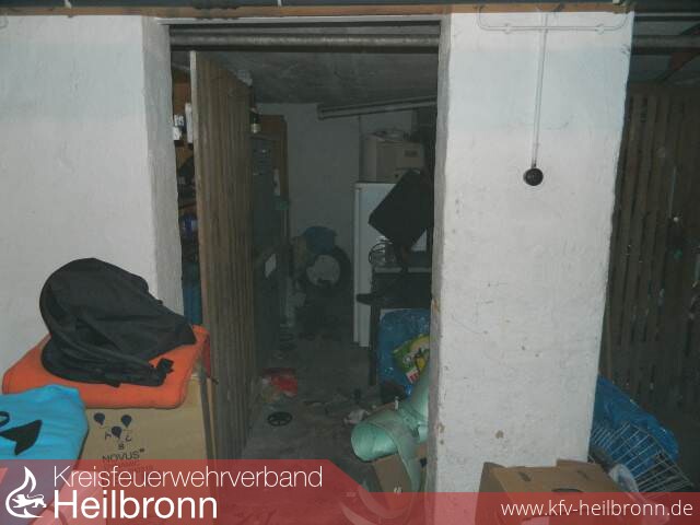 Die unter Atemschutz eingesetzten Einsatzkräfte stellten fest, dass Rauch aus einem Kellerverschlag kam.