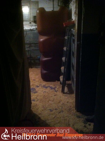 Diesmal hatten besorgte Anwohner eines Mehrfamilienhauses die 112 gerufen, weil ein provisorisch installierter Heizöltank aus unbekannter Ursache umgekippt und dabei Leck geschlagen war.