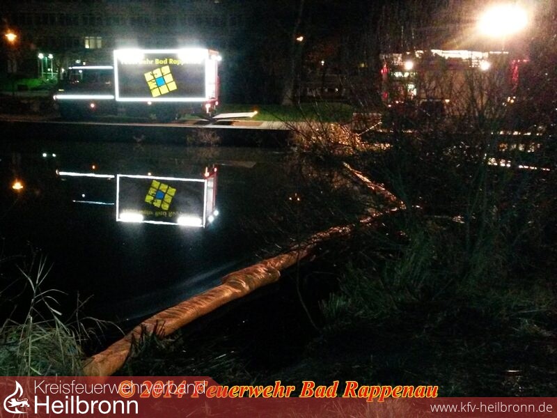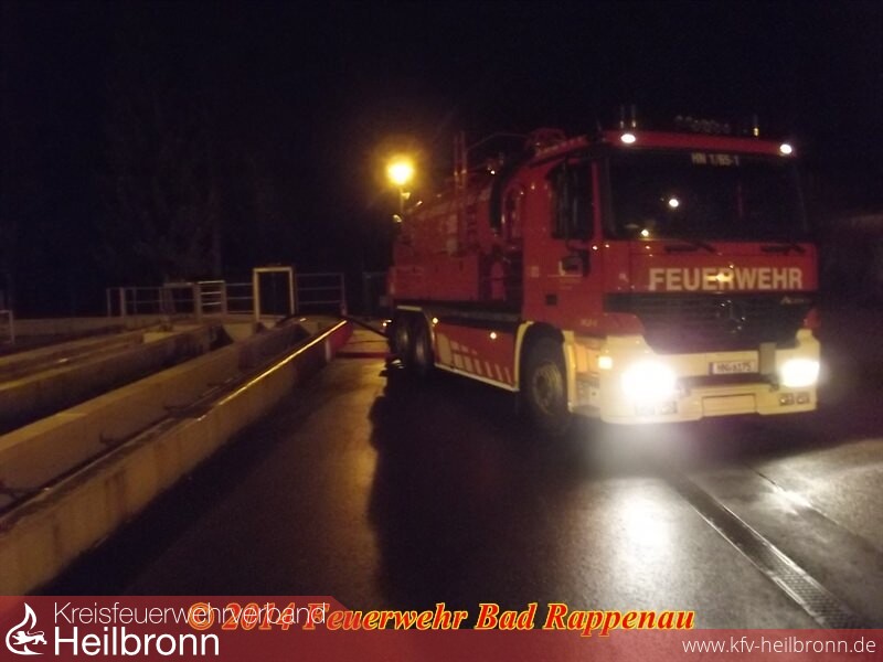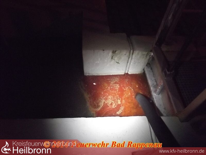 Die Einsatzkräfte der Abteilung Bad Rappenau konnten gegen 03:00 Uhr ihre Nachtruhe fortsetzen. Die Kollegen der Berufsfeuerwehr Heilbronn waren bis gegen 5:00 Uhr beschäftigt, die ca. 3.500 Liter Öl-Wasser-Gemisch aufzunehmen.
