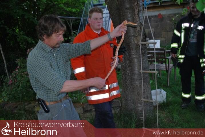 Die Bewohner eines Wohnhauses in der Gemminger Strasse hatten zunächst die Polizei verständigt, weil sie in ihrem Garten eine Schlange gesehen hatten. Die Polizei wiederum schaltete die Feuerwehr ein.