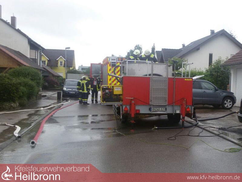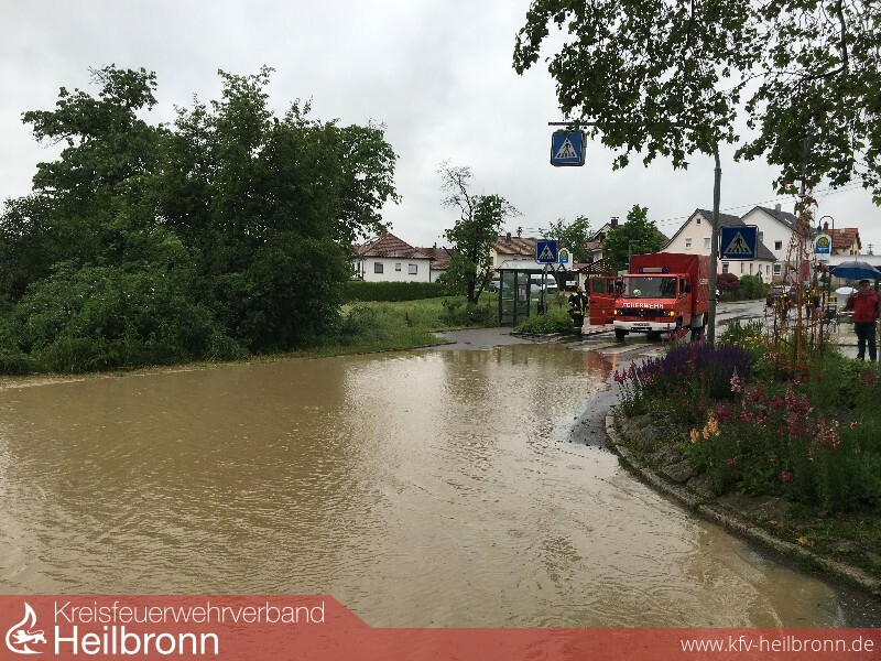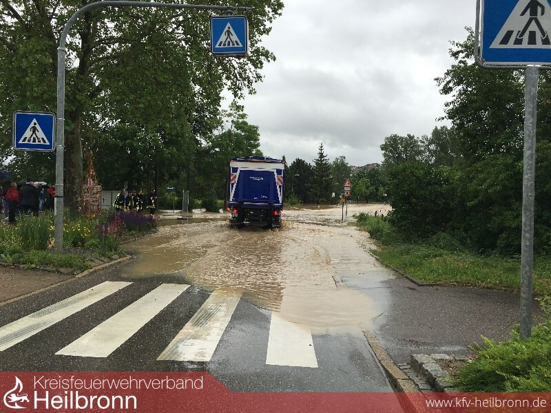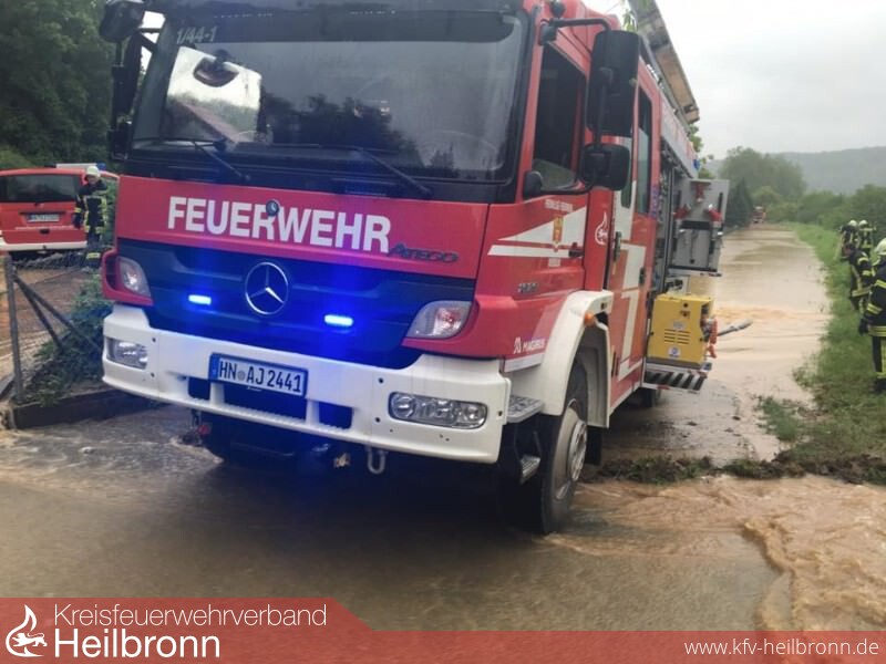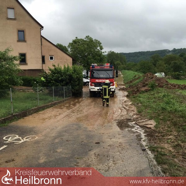 Inmitten der Nacht von Sonntag auf Montag wurden ab 2 Uhr die Feuerwehren Bad Rappenau, Bad Wimpfen, Beilstein, Brackenheim, Ellbachtal, Eppingen, Leingarten, Obersulm, Offenau, Untereisesheim und Untergruppenbach von der Integrierten Leitstelle in die nach dem Starkregen vom Hochwasser betroffenen Kommunen im nördlichen Landkreis entsendet. Jede der Feuerwehren brachte neben Personal zur Verstärkung der Einsatzkräfte vor Ort zusätzliche Tauchpumpen, Wassersauger und Stromerzeuger mit. Zusätzlich unterstützte zum Beispiel die Feuerwehr Leingarten im Neckarsulmer Audi-Werk mit ihrer Hochwasserpumpe und die Feuerwehr Brackenheim mit einem mobilen Ölabscheider in Eberstadt.