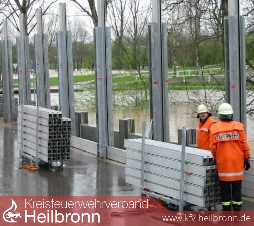 Um 14 Uhr begannen 8 Feuerwehrleute und 8 Baubetriebshofmitarbeiter mit dem Aufbau der Wand, um 16.30 Uhr war ein Schutz mit 2 m aufgebaut. Nach Fortschreibung der Hochwasserprognose durch die Hochwasservorhersagezentrale für die Mühle Kochendorf auf 8,7 m wurden die Dammbalken um 23 Uhr auf 2,35 m erhöht.