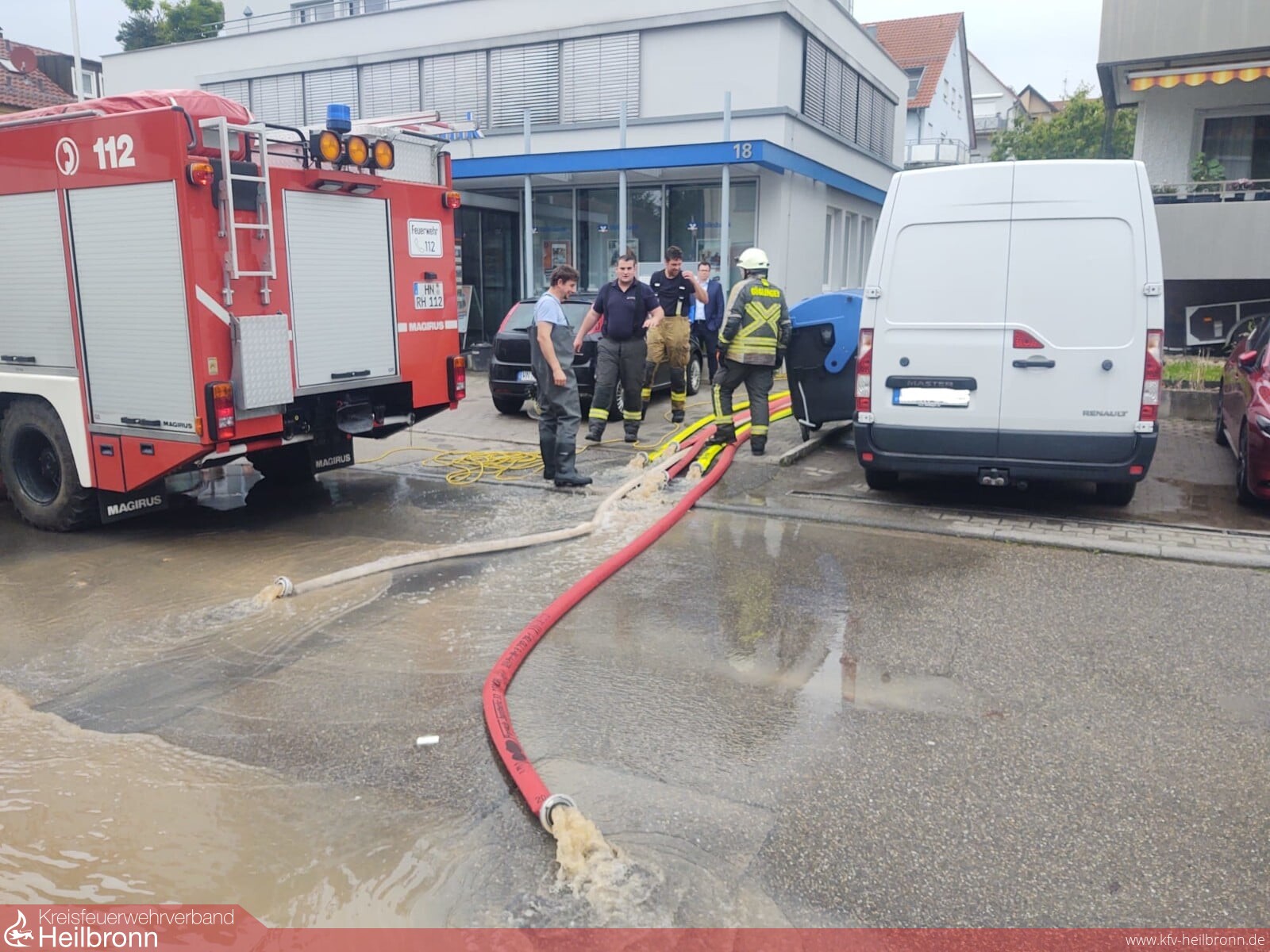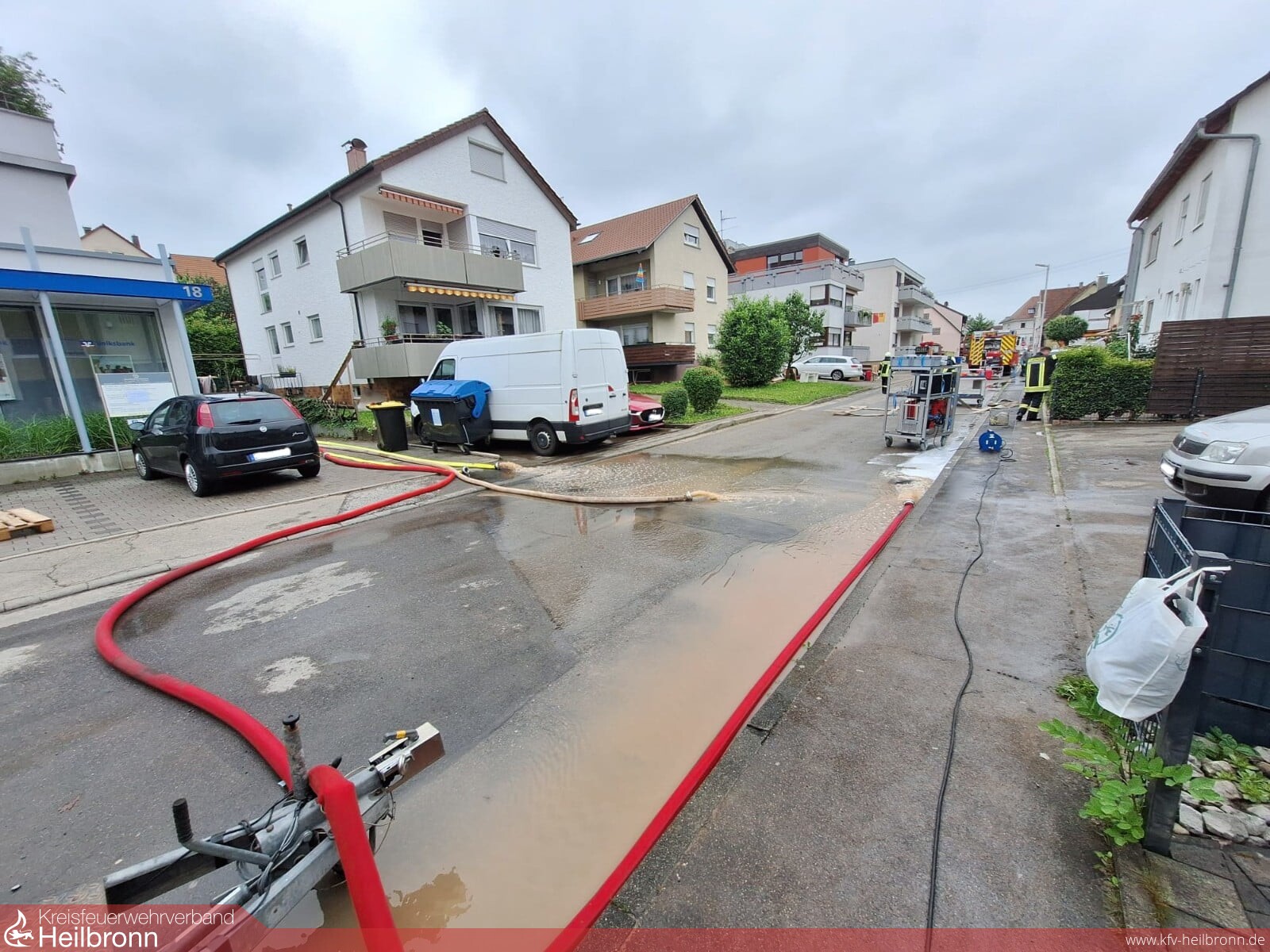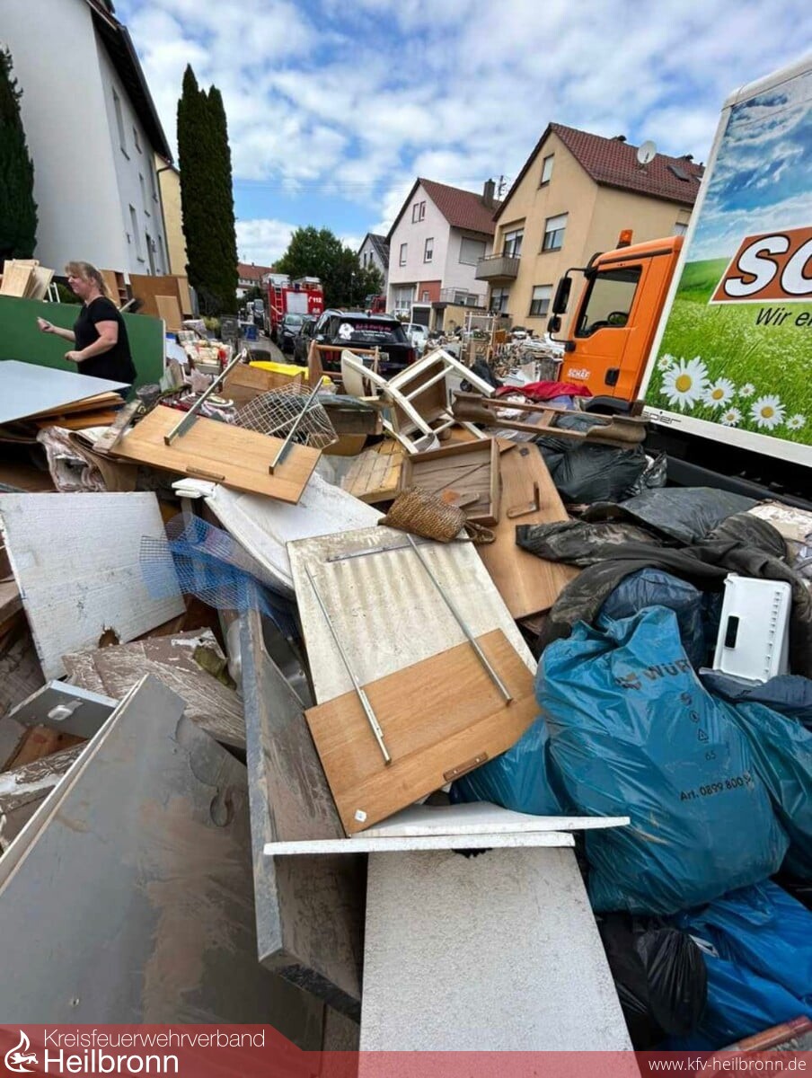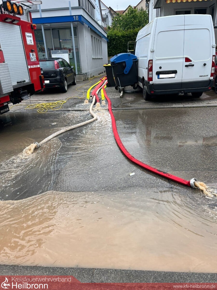 Am frühen Montagmorgen wurde vom Regierungspräsidium Stuttgart der Hochwasserzug des Landkreises Heilbronn, bestehend aus Einsatzkräften der Feuerwehren Brackenheim und Güglingen, in den Rems-Murr-Kreis nach Leutenbach beordert. Der Hochwasserzug wurde nach einer ersten Sichtung vor Ort durch eine Nachforderung mit dem Ölsep der Feuerwehr Bad Friedrichshall ergänzt.