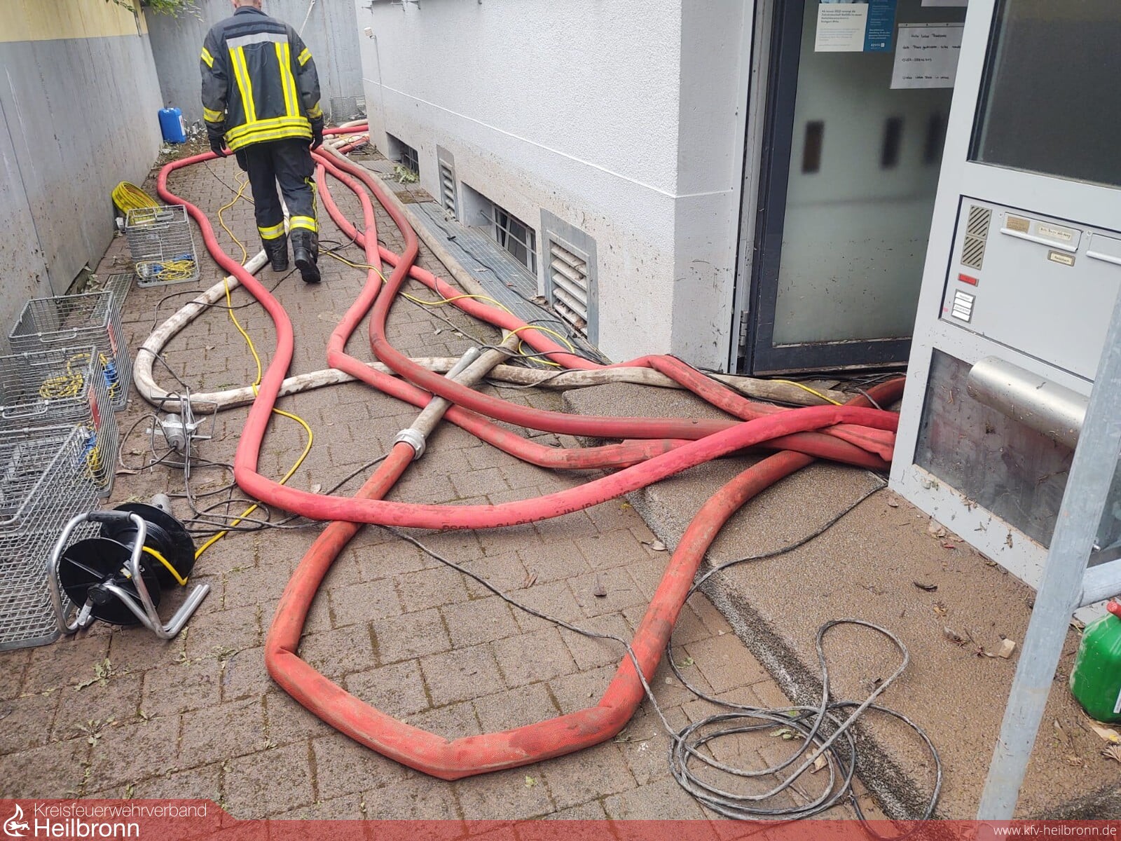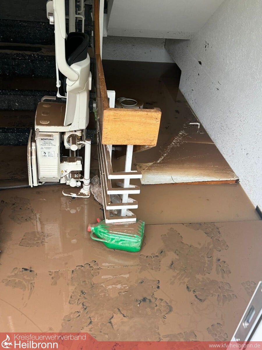 Zusammen mit der örtlichen Feuerwehr und weiteren Wehren aus dem Rems-Murr-Kreis und dem Landkreis Schwäbisch Hall wurden zahlreiche Keller und Tiefgaragen entlang des durch den Ort verlaufenden Buchenbachs ausgepumpt.