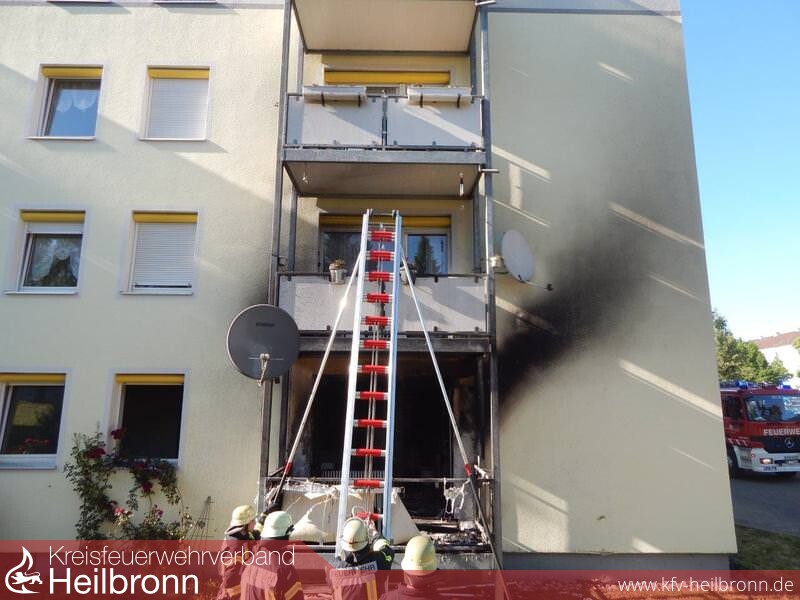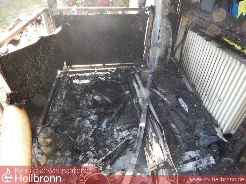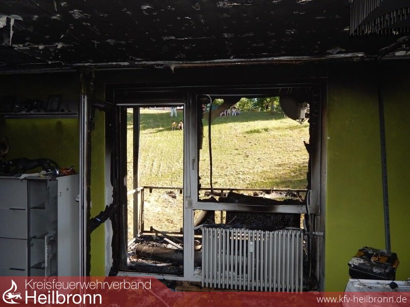 An der Einsatzstelle brannte es auf einem Balkon im Erdgeschoss. Durch die enorme Wärmestrahlung waren die Scheiben der Balkontür und -fenster bereits geborsten. Die Flammen breiteten sich schon im Wohnzimmer sowie auf den Balkon des ersten Obergeschosses aus.