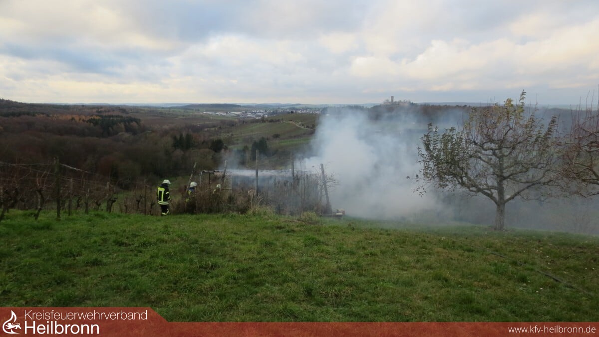 Eine Weinberghütte brannte am Samstagnachmittag bei Mühlbach ab. Wie ermittelt werden konnte, hatte der Besitzer an diesem Tag unterhalb der Hütte Rodungsarbeiten gemacht und das abgeschnittene Reisig verbrannt. Offenbar blies der Wind Reste des Feuers gegen die Hütte, die sich entzündete. Die Feuerwehr Eppingen war mit vier Fahrzeugen und 30 Einsatzkräften am Brandort.