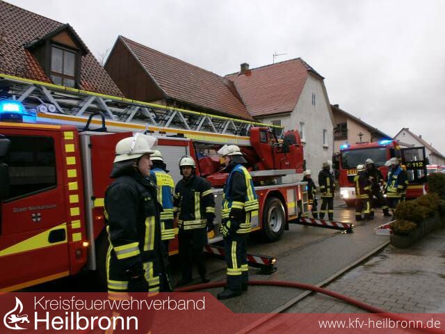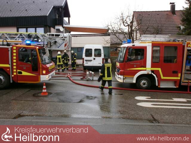 Mit der Alarmmeldung "Wohnungsbrand, Menschenleben in Gefahr" wurde die Feuerwehr Dahenfeld und die Feuerwehr Neckarsulm am frühen Dienstagabend alarmiert. In der Brambacherstraße in Dahenfeld brannte es im Erdgeschoss einer ehemaligen Elektrowerkstatt.Auf der Anfahrt konnte man schon den schwarzer Rauch und Flammen aus der Werkstatt sehen.Desweiteren wurde von der Leitstelle gemeldet das sich im Gebäude noch zwei Personen befänden.