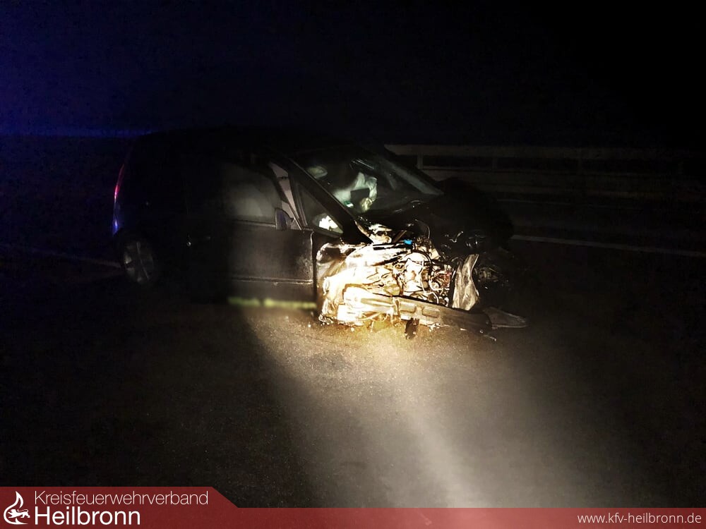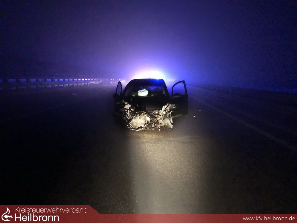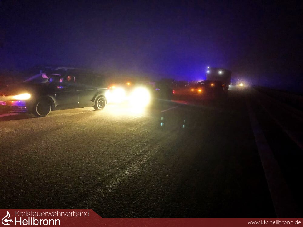 Jagsttalbrücke - Verkehrsunfall wegen spiegelglatten Fahrbahn